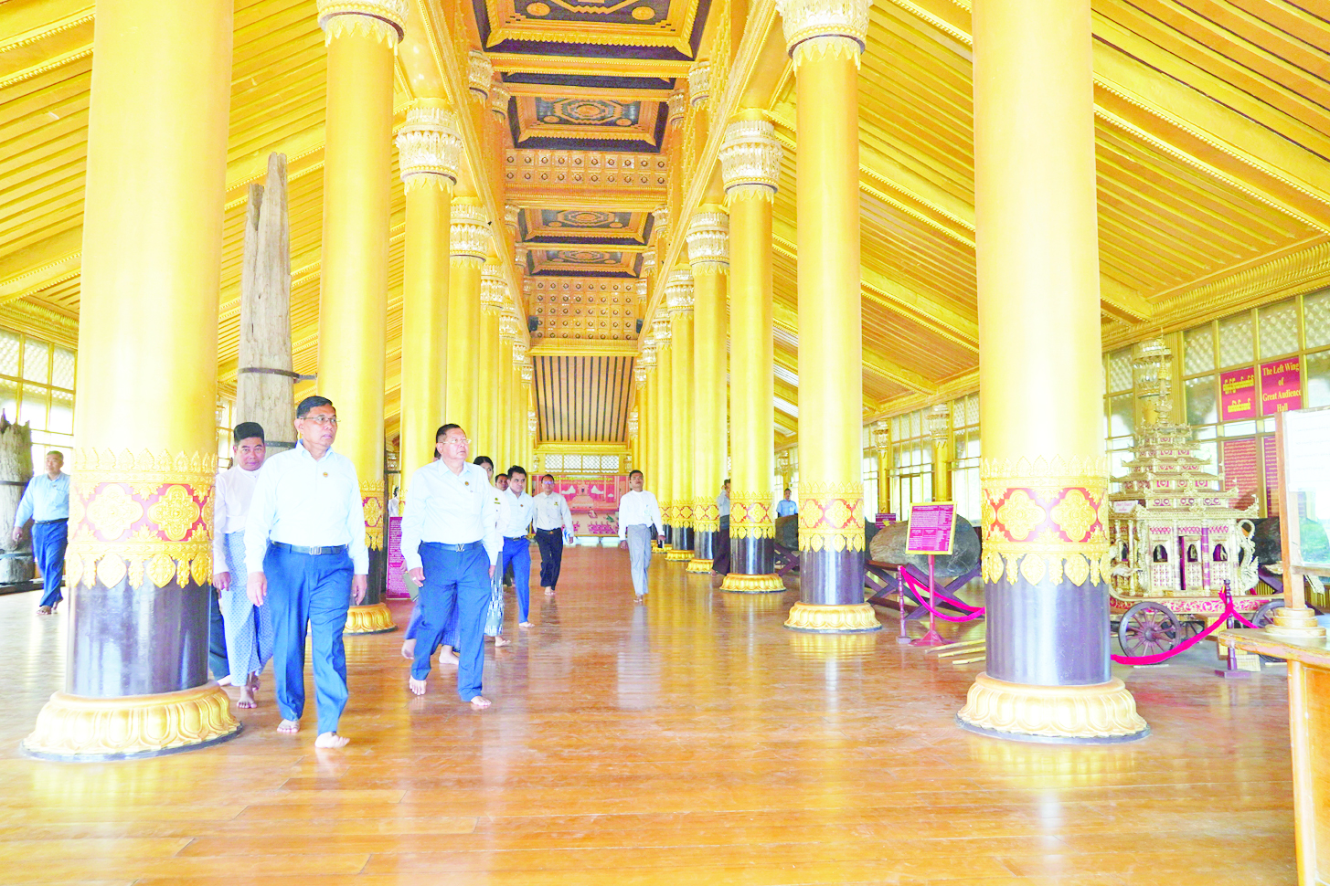ဆောက်လုပ်ရေးဝန်ကြီးဌာန ပြည်ထောင်စုဝန်ကြီးဦးမျိုးသန့်သည် ပဲခူးတိုင်းဒေသကြီး လမ်းပန်းဆက်သွယ်ရေးဝန်ကြီး ဦးတင်ဆွေနှင့်အတူ ယနေ့တွင် ပဲခူးမြို့ရှိ ကမ္ဘောဇသာဒီနန်းတော် ပြုပြင်ဆောင်ရွက်နေသည့် လုပ်ငန်းခွင်သို့ သွားရောက်စစ်ဆေးသည်။