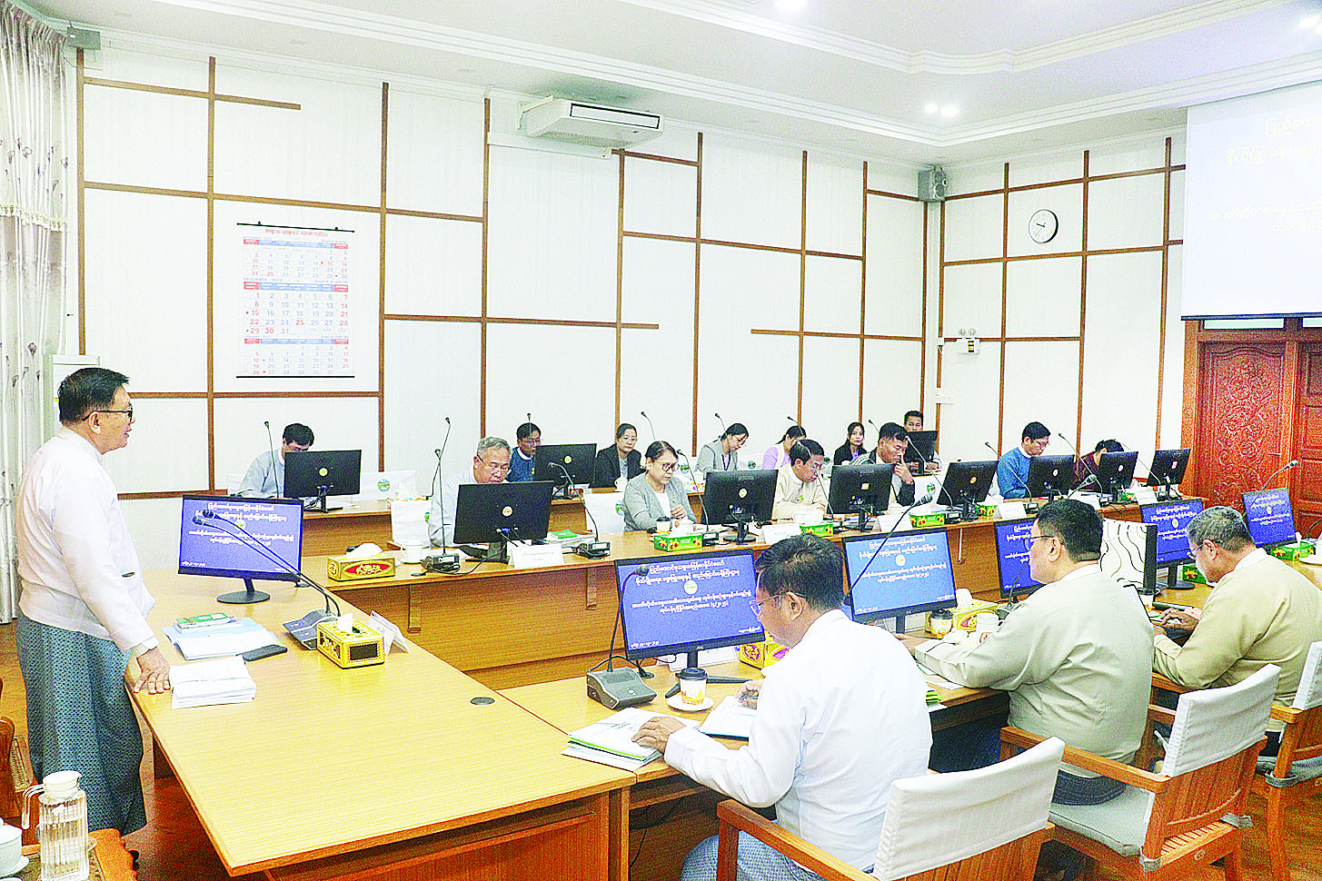 စိုက်ပျိုးရေး၊ မွေးမြူရေးနှင့်ဆည်မြောင်းဝန်ကြီးဌာန၏ အဂတိလိုက်စားမှုတားဆီးကာကွယ်ရေး (CPU) အဖွဲ့၏ လုပ်ငန်းညှိနှိုင်းအစည်းအဝေး ၄/၂၀၂၄ ကို ယမန်နေ့ နံနက်ပိုင်းက ပြည်ထောင်စုဝန်ကြီးရုံးအစည်း အဝေးခန်းမ၌ကျင်းပရာဝန်ကြီးဌာန (CPU) ခေါင်းဆောင် ဒုတိယဝန်ကြီး ဒေါက်တာအောင်ကြီး နှင့်အဖွဲ့ဝင်များ တက်ရောက်ကြသည်။