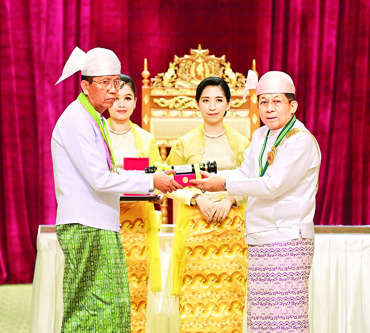 ဂုဏ်ထူးဆောင်ဘွဲ့၊ တံဆိပ်ချီးမြှင့်အပ်နှင်းရေးဆိုင်ရာ လုပ်ငန်းများကို ဂုဏ်ထူးဆောင်ဘွဲ့များ၊ ဂုဏ်ထူးဆောင်တံဆိပ်များဆိုင်ရာ ပြဋ္ဌာန်းချက်တွေနှင့်အညီ အဆင့်ဆင့် ထောက်ခံတင်ပြချက်များအပေါ်တွင် စနစ်တကျစိစစ်ရွေးချယ်ပြီး အမှန်တကယ်ဂုဏ်ပြုချီးမြှင့်ထိုက်သူများကိုသာ ထိုက်ထိုက်တန်တန် ချီးမြှင့်အပ်နှင်းခဲ့ခြင်းဖြစ်သဖြင့် ဘွဲ့ခံပုဂ္ဂိုလ်များနဲ့ မိသားစုဝင်များအတွက် အထူးဂုဏ်ယူဝမ်းမြောက်မိသည်ကို ပြောကြားလိုကြောင်း။