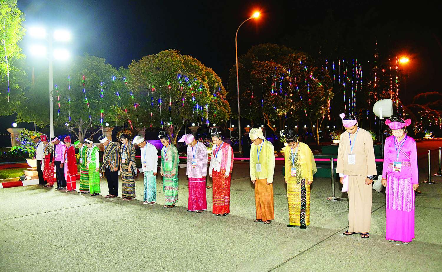 ထို့နောက် နံနက် ၆ နာရီတွင် ပြည်ထောင်စုအဆင့်ပုဂ္ဂိုလ်များ၊ ပြည်ထောင်စုဝန်ကြီးများ၊ ပြည်ထောင်စုစာရင်းစစ်ချုပ်၊ ပြည်ထောင်စုရာထူးဝန်အဖွဲ့ဥက္ကဋ္ဌ၊ နေပြည်တော်ကောင်စီဥက္ကဋ္ဌ၊ မြန်မာနိုင်ငံတော်ဗဟိုဘဏ်ဥက္ကဋ္ဌ၊ အဂတိလိုက်စားမှုတိုက်ဖျက်ရေးကော်မရှင်ဥက္ကဋ္ဌ၊ မြန်မာနိုင်ငံအမျိုးသားလူ့အခွင့်အရေးကော်မရှင်ဥက္ကဋ္ဌ၊ တပ်မတော်အရာရှိကြီးများ၊ ပြည်ထောင်စုတရားလွှတ်တော်ချုပ်မှ တရားသူကြီးများ၊ နိုင်ငံတော်ဖွဲ့စည်းပုံအခြေခံဥပဒေဆိုင်ရာ ခုံရုံးအဖွဲ့ဝင်များ၊ ပြည်ထောင်စုရွေးကောက်ပွဲကော်မရှင်အဖွဲ့ဝင်များ၊ နေပြည်တော်တိုင်းစစ်ဌာနချုပ်တိုင်းမှူး၊ ဒုတိယဝန်ကြီးများ၊ ပြည်ထောင်စုရာထူးဝန်အဖွဲ့အဖွဲ့ဝင်များ၊ မြန်မာနိုင်ငံတော် ဗဟိုဘဏ် ဒုတိယဥက္ကဋ္ဌ၊ အဂတိလိုက်စားမှုတိုက်ဖျက်ရေးကော်မရှင်အဖွဲ့ဝင်များ၊ မြန်မာနိုင်ငံအမျိုးသားလူ့အခွင့်အရေးကော်မရှင် အဖွဲ့ဝင်များ၊ အခွန်အယူခံခုံရုံးအဖွဲ့ဥက္ကဋ္ဌ၊ နေပြည်တော်ကောင်စီဝင်များ၊ နေပြည်တော်စည်ပင်သာယာရေးကော်မတီ ဒုတိယမြို့တော်ဝန်၊ ဌာနဆိုင်ရာအကြီးအကဲများနှင့် ဝန်ထမ်းများ၊ တိုင်းရင်းသား၊ တိုင်းရင်းသူများ၊ မိဘပြည်သူများသည် နိုင်ငံတော်အလံအလေးပြုပွဲ အခမ်းအနားကျင်းပမည့် မြို့တော်ခန်းမရှေ့ ရင်ပြင်သို့ ဝင်ရောက်နေရာယူကြသည်။