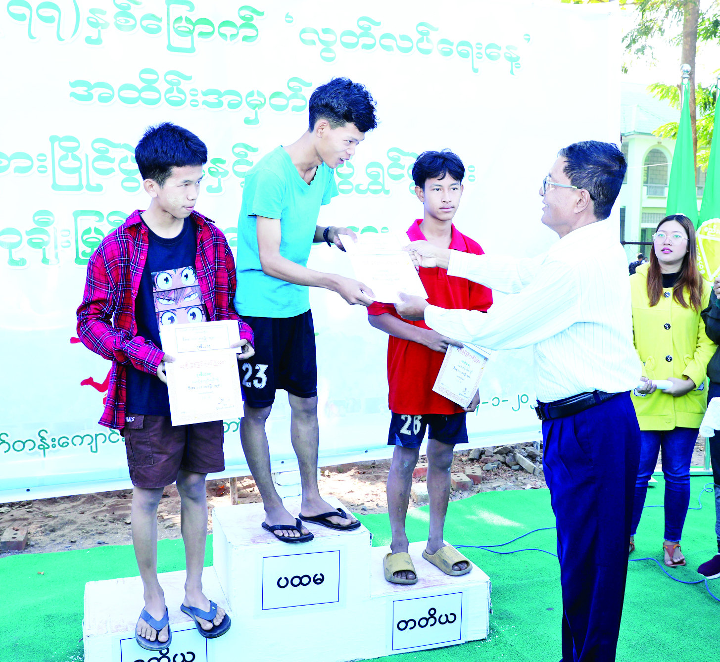 ထို့နောက် ဒုတိယဝန်ကြီးက မီတာ(၁၀၀) အပြေး ပြိုင်ပွဲ၊ ပိုက်ကျော်ခြင်း၊ ခါးကွင်းလှည့်၊ လွန်ဆွဲပြိုင်ပွဲ တို့တွင် ပထမ၊ ဒုတိယနှင့် တတိယဆုရရှိသူများကို ဂုဏ်ပြုမှတ်တမ်းလွှာနှင့် ဂုဏ်ပြုဆုငွေများ ပေးအပ်ချီးမြှင့်သည်။