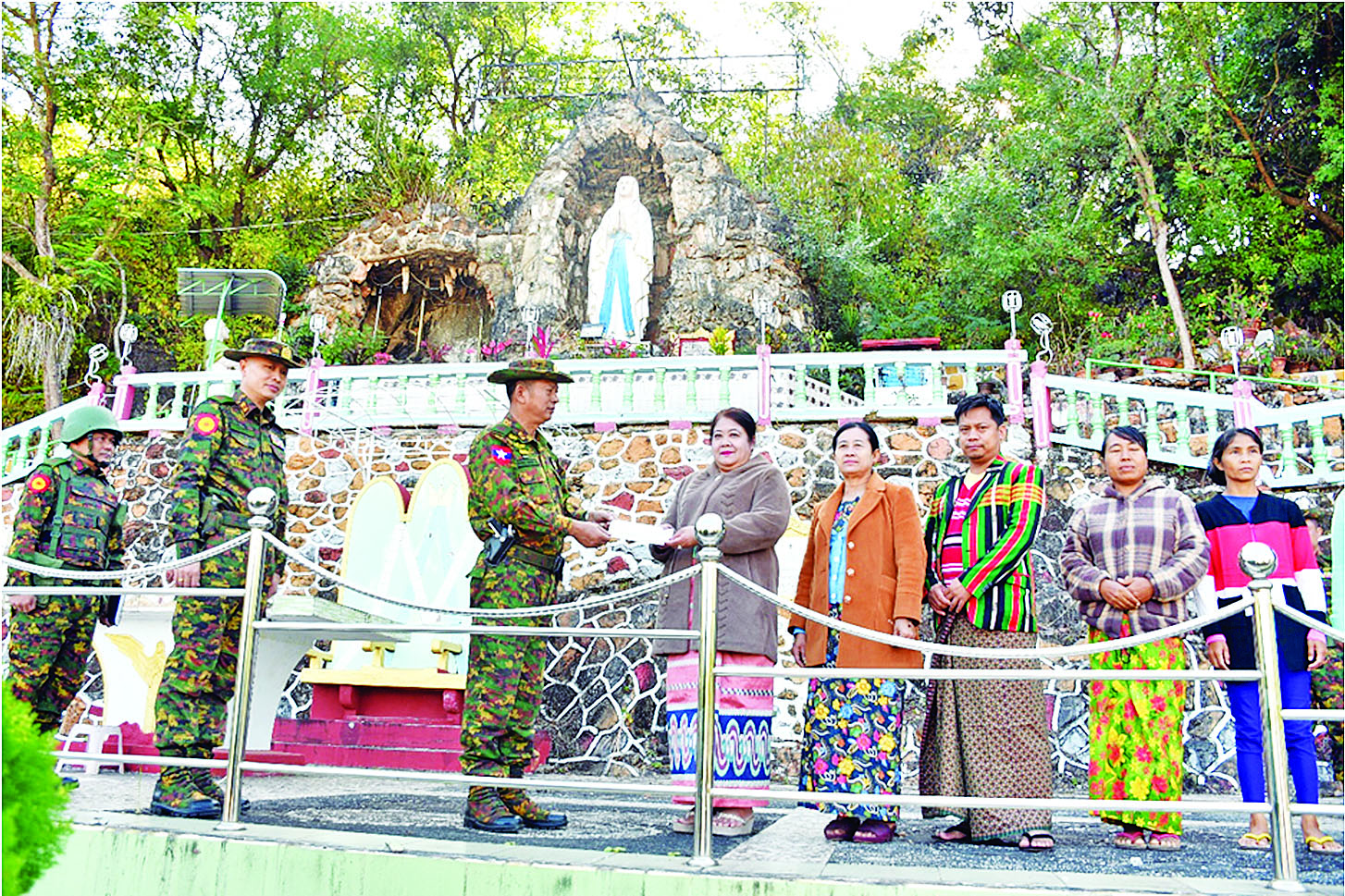 ထိုသို့ ဆောင်ရွက်ပေးနေမှုများကို ကာကွယ်ရေးဦးစီးချုပ်ရုံး(ကြည်း)မှ ဒုတိယဗိုလ်ချုပ်ကြီး နိုင်နိုင်ဦး၊ အရှေ့ပိုင်းတိုင်းစစ်ဌာနချုပ် တိုင်းမှူးနှင့် တာဝန်ရှိသူများက သွားရောက်ကြည့်ရှုအားပေးကာ လုဒ်မယ်တော်ကျောင်း (မယ်တော်ဂူ) အတွက် အလှူငွေများပေးအပ်ပြီး အဆိုပါမြို့နယ်အတွင်းရှိ ဆရာတော်၊ သံဃာတော်များအား နတ်တောဘုန်းတော်ကြီးကျောင်းတွင် ဆန်၊ ဆီ၊ စားသောက်ဖွယ်ရာများ၊ အလှူငွေများအား ဆက်ကပ်လှူဒါန်းခဲ့သည်။