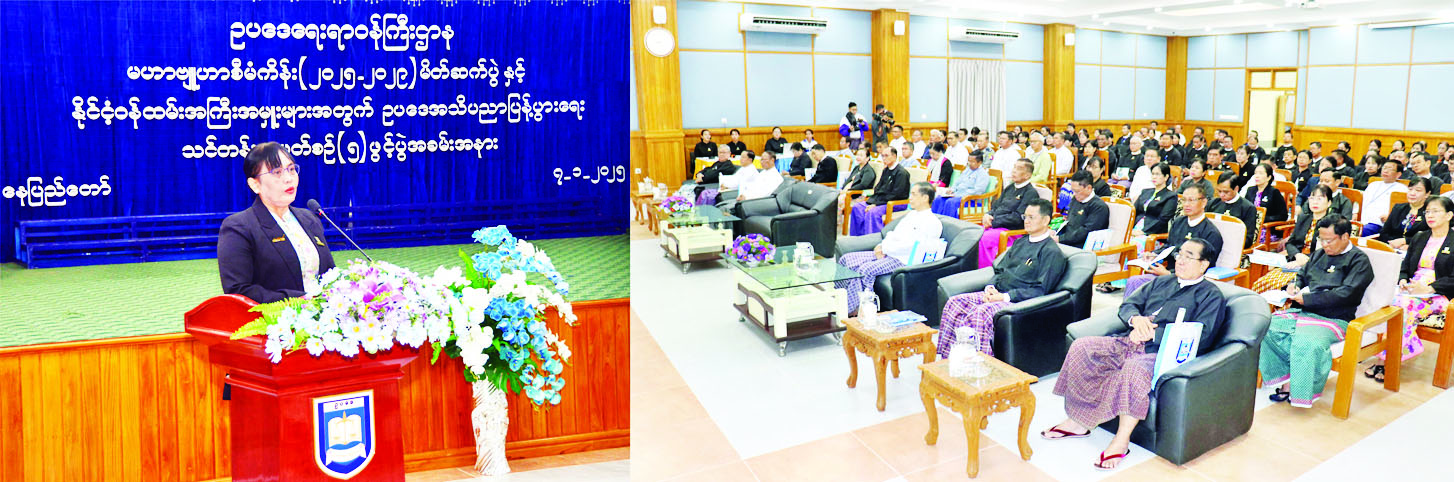 ဥပဒေရေးရာဝန်ကြီးဌာန၏ မဟာဗျူဟာစီမံကိန်း (၂၀၂၅-၂၀၂၉) မိတ်ဆက်ပွဲနှင့် နိုင်ငံ့ဝန်ထမ်း အကြီးအမှူးများအတွက် ဥပဒေအသိပညာပြန့်ပွားရေး သင်တန်းအမှတ်စဉ် (၅) ဖွင့်ပွဲအခမ်းအနားကို ယနေ့နံနက် ၉ နာရီက နေပြည်တော်ဥတ္တရသီရိမြို့နယ်ရှိ ဥပဒေအသိပညာ ပြန့်ပွားရေးသင်တန်း၌ ကျင်းပသည်။