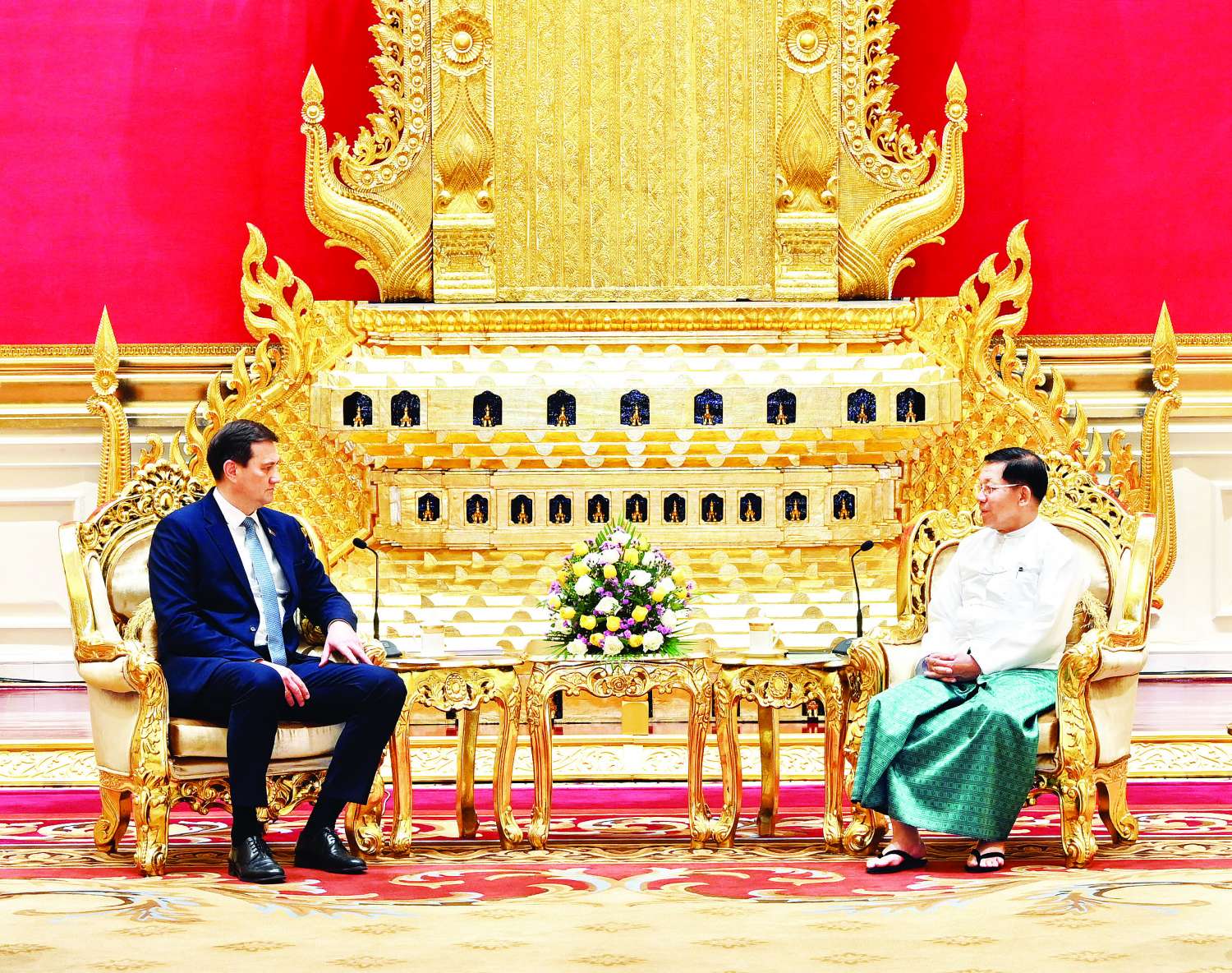 နိုင်ငံတော်စီမံအုပ်ချုပ်ရေးကောင်စီဥက္ကဋ္ဌ နိုင်ငံတော်ဝန်ကြီးချုပ် ဗိုလ်ချုပ်မှူးကြီး မင်းအောင်လှိုင် ဘယ်လာရုစ်သမ္မတနိုင်ငံ၊ နိုင်ငံခြားရေးဝန်ကြီး H.E. Mr. Maxim RYZHENKOV အား ယနေ့မွန်းလွဲပိုင်းတွင် နေပြည်တော်ရှိ နိုင်ငံတော်စီမံအုပ်ချုပ်ရေး ကောင်စီဥက္ကဋ္ဌရုံး၊ သံတမန်ဆောင်ဧည့်ခန်းမ၌ လက်ခံတွေ့ဆုံသည်။