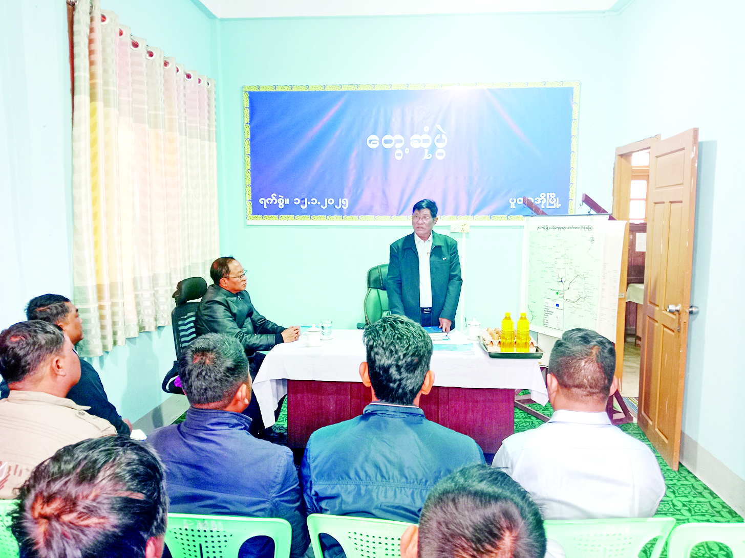 တွေ့ဆုံစဉ် ပြည်နယ်လျှပ်စစ်အင်ဂျင်နီယာ ဦးခန့်ထက်နှင့် တာဝန်ရှိသူများက ခရိုင်အတွင်း လျှပ်စစ်ဓာတ်အားထုတ်လုပ်နိုင်မှု၊ ဖြန့်ဖြူးနိုင်မှု အခြေအနေများနှင့်စပ်လျဉ်း၍ ရှင်းလင်းတင်ပြကြရာ ပြည်ထောင်စုဝန်ကြီးက လိုအပ်သည်များကို ဖြည့်စွက်မှာကြားသည်။