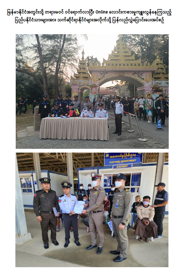 မြန်မာနိုင်ငံ၊ နိုင်ငံတော်အစိုးရအနေဖြင့် နိုင်ငံတော်တည်ငြိမ်အေးချမ်းရေးနှင့် တရားဥပဒေစိုးမိုးရေးကို အလေးထားဆောင်ရွက်လျက်ရှိပြီး အချို့သောနယ်စပ်ဒေသများ၏ လက်ရှိဖြစ်ပေါ်နေသည့် အခြေအနေများအပေါ် အခွင့်ကောင်းယူ၍ ပြည်ပနိုင်ငံသားအချို့အနေဖြင့် EAO လက်နက်ကိုင်အဖွဲ့များအပါအဝင် ဆက်စပ်နေရာများမှ ကိုယ်ကျိုးစီးပွားရှာသူများ၏ ပါဝင်ပတ်သက်မှုများဖြင့် Online လိမ်လည်မှုများ၊ Online လောင်းကစားမှုများကို ကျယ်ပြန့်စွာ ဆောင်ရွက်လျက်ရှိသဖြင့် စိစစ်ဖော်ထုတ်ခြင်းနှင့် ပြန်လည်လွှဲပြောင်းခြင်းလုပ်ငန်းစဉ်ကို အလေးထားဆောင်ရွက်လျက်ရှိသည်။