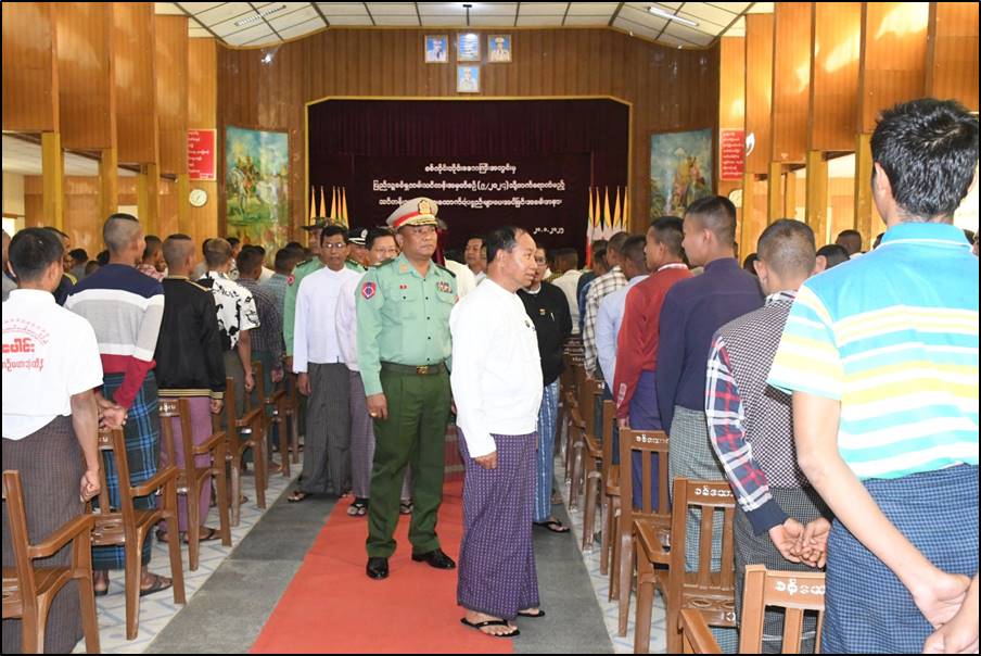 စစ်ကိုင်းတိုင်းဒေသကြီးအတွင်းမှ ပြည်သူ့စစ်မှုထမ်းသင်တန်း အမှတ်စဉ် (၉/၂၀၂၄) သို့ တက်ရောက်မည့် နိုင်ငံ့သားကောင်းရတနာများအား ယနေ့နေလယ်ပိုင်းတွင် အနောက်မြောက်တိုင်းစစ်ဌာနချုပ် ဇေယျာသီရိခန်းမ၌ တိုင်းဒေသကြီးဝန်ကြီးချုပ် ဦးမြတ်ကျော်၊ တိုင်းမှူး ဗိုလ်မှူးချုပ် မျိုးမင်းထွေးနှင့် တာဝန်ရှိသူများက သွားရောက်တွေ့ဆုံအမှာစကား ပြောကြားသည်။