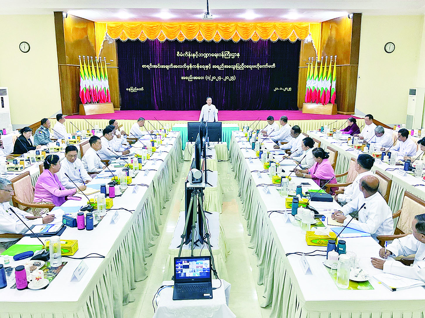 အစည်းအဝေးသို့ ဗဟိုကော်မတီအဖွဲ့ဝင် ပြည်ထောင်စုဝန်ကြီးများ၊ ပြည်ထောင်စုစာရင်းစစ်ချုပ်၊ မြန်မာနိုင်ငံတော်ဗဟိုဘဏ်ဥက္ကဋ္ဌ၊ ဒုတိယဝန်ကြီးများ၊ နေပြည်တော်ကောင်စီဝင်၊ ညွှန်ကြားရေးမှူးချုပ်များ၊ ကဏ္ဍအလိုက်လုပ်ငန်းအဖွဲ့ဥက္ကဋ္ဌများနှင့် တာဝန်ရှိသူများတက်ရောက်ကြပြီး တိုင်းဒေသကြီးနှင့်ပြည်နယ်စီးပွားရေးရာဝန်ကြီးများ၊ ရန်ကုန်စီးပွားရေးတက္ကသိုလ် စာရင်းအင်းပညာဌာန ပါမောက္ခ၊ မြန်မာနိုင်ငံစာရင်းအင်းပညာအသင်းဥက္ကဋ္ဌတို့က ဗီဒီယိုကွန်ဖရင့်ဖြင့် တက်ရောက်ကြသည်။