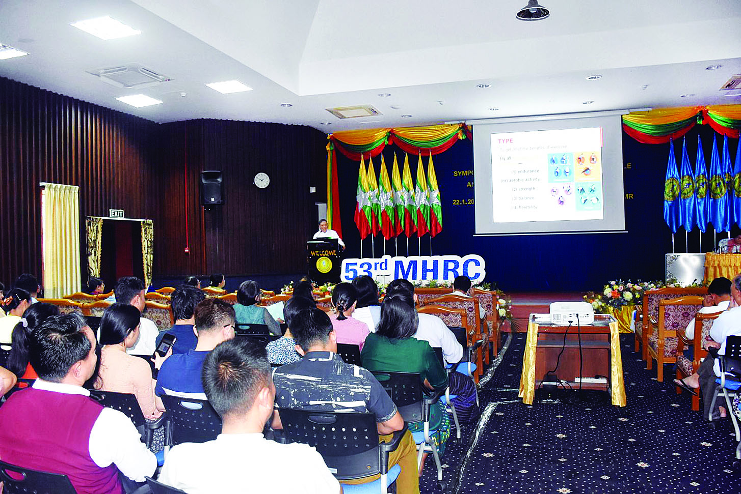 ကျန်းမာရေးဝန်ကြီးဌာနက ကြီးမှူးကျင်းပသော (၅၃)ကြိမ်မြောက် မြန်မာနိုင်ငံ ကျန်းမာရေးဆိုင်ရာ သုတေသနညီလာခံ တတိယနေ့ကို ယနေ့နံနက်ပိုင်းတွင် ရန်ကုန်မြို့ဒဂုံမြို့နယ် အမှတ်-၅ ဇီဝကလမ်းရှိ ဆေးသုတေသနဦးစီးဌာန(ရုံးချုပ်)၌ ဆက်လက်ကျင်းပရာ သုတေသနစာတမ်းရှင်များက သုတေသနစာတမ်း (၁၀)စောင်ကို ဖတ်ကြားတင်ပြကြသည်။