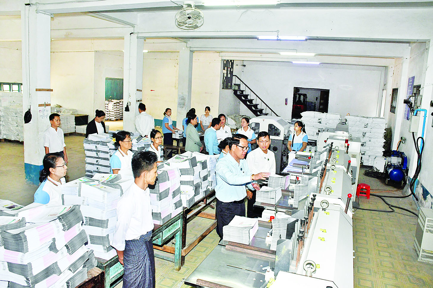 ထို့နောက် ပြည်ထောင်စုဝန်ကြီးက ပုံနှိပ်လုပ်ငန်းနှင့်ပတ်သက်၍ ပညာရေးဝန်ကြီးဌာနက ပုံနှိပ်ရန်အပ်နှံထားသည့် ကျောင်းသုံးစာအုပ်များအပြင် ဝန်ကြီးဌာနအသီးသီးကလည်း ပုံနှိပ်ရန်အမှာစာများ ရရှိထားပြီးဖြစ်သဖြင့် လုပ်ငန်းများအားလုံး သတ်မှတ်ထားသည့်အချိန် ပြီးစီးရန်လိုအပ်ကြောင်း၊ လုပ်ငန်းခွင်တွင် အခက်အခဲစိန်ခေါ်မှုများရှိပါက ပေါင်းစပ်ညှိနှိုင်းဆောင်ရွက်သွားရမည် ဖြစ်ကြောင်း၊ ဝန်ထမ်းများအနေဖြင့် အဆင့်ဆင့်တာဝန်ယူမှု၊ တာဝန်ခံမှု၊ နားလည်မှု၊ ယုံကြည်မှုတို့ဖြင့် လုပ်ဆောင်ရန်လိုအပ်ကြောင်း၊ ဝန်ထမ်းများသည် ယနေ့နိုင်ငံတွင် ဖြစ်ပေါ်နေသည့် အခြေအနေမှန်များကို သိရှိနားလည်ရန်လိုအပ်ကြောင်း ပြောကြားသည်။