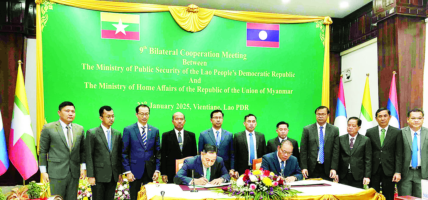 ပြည်ထောင်စုသမ္မတ မြန်မာနိုင်ငံတော်ပြည်ထဲရေးဝန်ကြီးဌာနနှင့် လာအိုပြည်သူ့ဒီမိုကရက်တစ်သမ္မတနိုင်ငံ ပြည်သူ့လုံခြုံရေးဝန်ကြီးဌာနတို့အကြား အဆင့်မြင့်အရာရှိကြီးများ အစည်းအဝေးကို ဇန်နဝါရီ ၂၂ ရက် နံနက်ပိုင်းတွင် ကျင်းပပြုလုပ်ခဲ့ပြီး မွန်းလွဲပိုင်းတွင်(၉)ကြိမ်မြောက် ဝန်ကြီးအဆင့် အစည်းအဝေးကို ဗီယင်ကျန်းမြို့ရှိ ပြည်သူ့လုံခြုံရေးဝန်ကြီးဌာန အစည်းအဝေးခန်းမ၌ ကျင်းပသည်။
