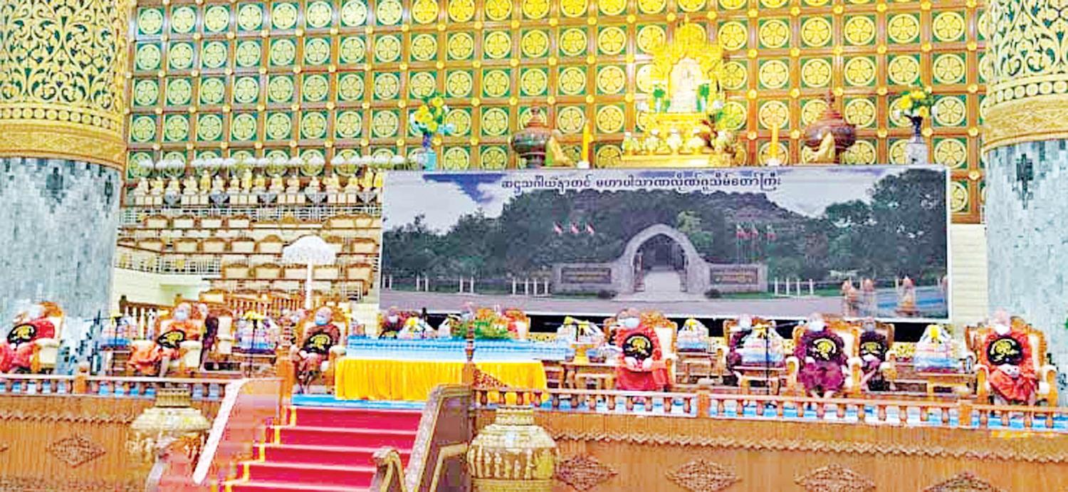 မြန်မာပြည်သူပြည်သားများ၊ ကမ္ဘာသူကမ္ဘာသားများ ကိုဗစ်-၁၉ ကပ်ရောဂါ ဘေးကင်းဝေးစေရေးအတွက် ၁၃၈၂ ခုနှစ်၊ တော်သလင်းလပြည့်နေ့ ယနေ့ နံနက်ပိုင်းတွင် ရန်ကုန်မြို့ မရမ်းကုန်းမြို့နယ် သီရိမင်္ဂလာ ကမ္ဘာအေးကုန်းမြေ ဆဋ္ဌသင်္ဂါယနာတင် မဟာပါသာဏလိုဏ်ဂူ သိမ်တော်ကြီး၌ နိုင်ငံတော်သံဃ မဟာနာ ယကအဖွဲ့ အကျိုးတော်ဆောင် သန်လျင်မင်းကျောင်းဆရာတော် အဂ္ဂမဟာပဏ္ဍိတ၊ အဂ္ဂမဟာသဒ္ဓမ္ မဇော တိကဓဇ ဘဒ္ဒန္တစန္ဒိမာဘိဝံသ အမှူး ပြုသော နိုင်ငံတော် သံဃမဟာနာယကအဖွဲ့ ဆရာတော်ကြီး ၁၅ ပါးတို့ သည် အန္တရာယ်ကင်းပရိတ်တရားတော်များ၊ အနန္တရာယိက အန္တရာယ်ကင်းကမ္မဝါစာများ ရွတ်ဖတ်ပူဇော် ကြသည်။