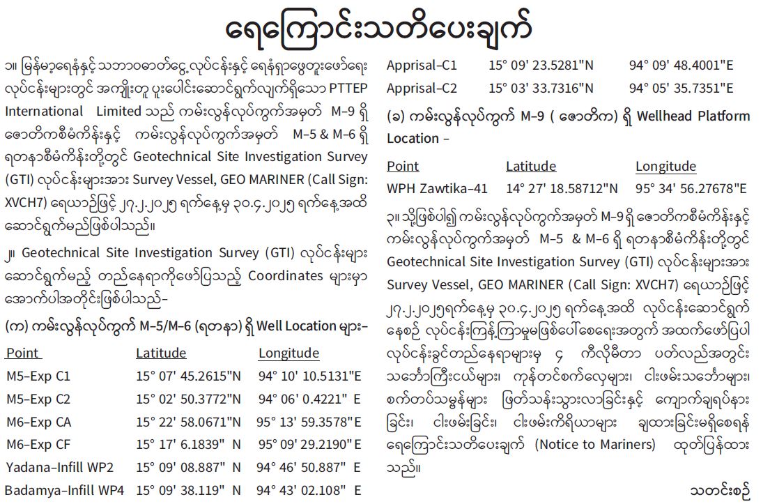 ဦးစီးဌာနနှင့် လုပ်ငန်းများ၏ ကြေညာချက်များ
