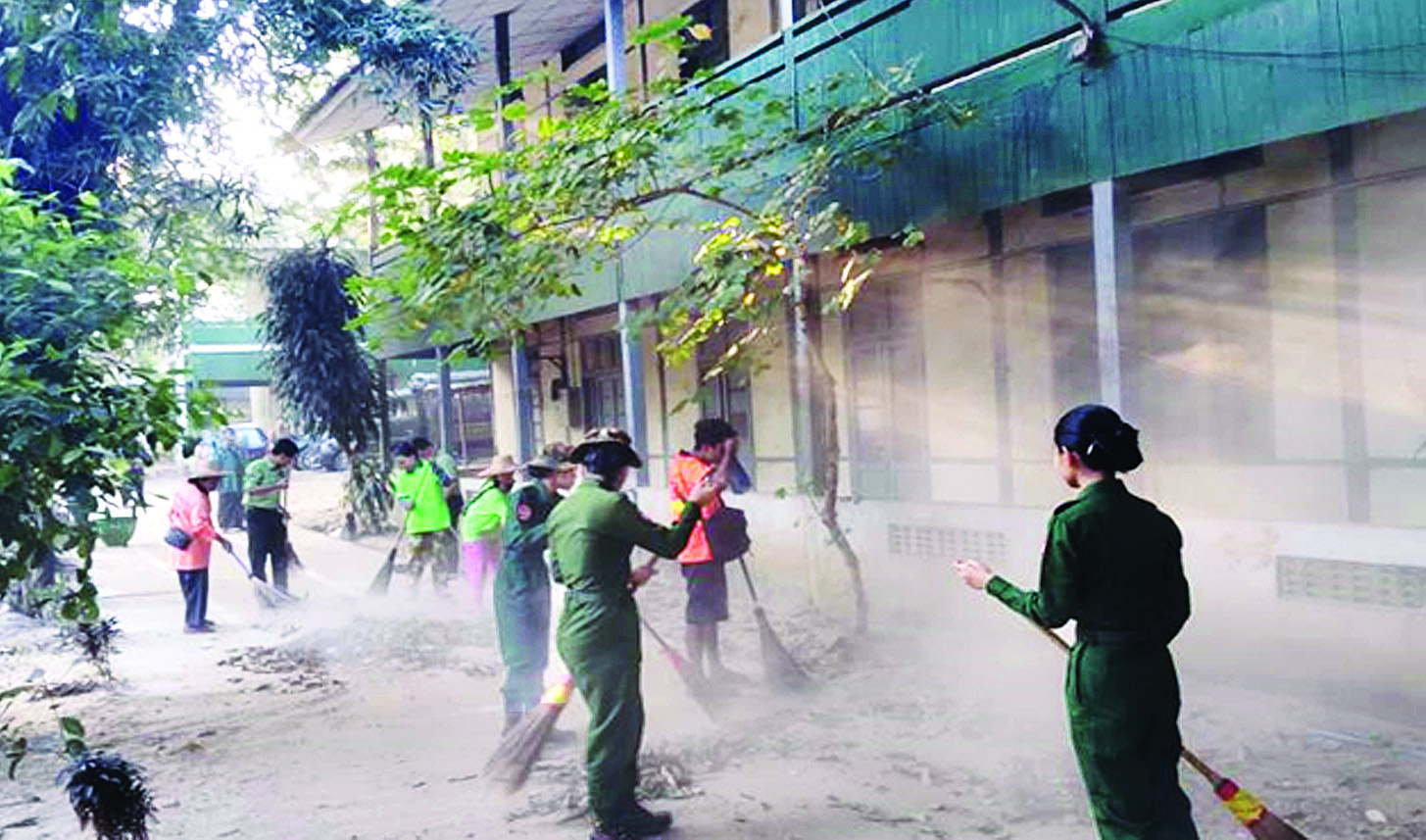 ထိုသို့ ဆောင်ရွက်ပေးလျက်ရှိရာ ယနေ့တွင် နေပြည်တော်ကောင်စီနယ်မြေ၊ ဇေယျာသီရိမြို့နယ် အပါအဝင် မြို့နယ် (၄) မြို့နယ်တို့၌လည်းကောင်း၊ ရှမ်းပြည်နယ် (တောင်ပိုင်း)၊ ဘန်းယဉ်မြို့နှင့် ကလောမြို့တို့၌လည်းကောင်း၊ ကယားပြည်နယ်လွိုင်ကော်မြို့ လွိုင်ကော်တက္ကသိုလ်၌ လည်းကောင်း၊ ရန်ကုန်တိုင်းဒေသကြီး၊ လှိုင်မြို့နယ်အပါအဝင် မြို့နယ် ၁၆ မြို့နယ်တို့၌လည်း ကောင်း၊ စာသင်ကျောင်းများ၊ တက္ကသိုလ်များ၌ သက်ဆိုင်ရာ တိုင်းစစ်ဌာနချုပ်များမှ နယ်မြေခံ တပ်မတော်သားများ၊ မြန်မာနိုင်ငံ ရဲတပ်ဖွဲ့ဝင်များ၊ မီးသတ်တပ်ဖွဲ့ဝင်များ၊ ဌာနဆိုင်ရာဝန်ထမ်းများ၊ စစ်မှုထမ်းဟောင်းအဖွဲ့ဝင်များ၊ ပြည်သူ့စစ် (ဌာနေ) တပ်ဖွဲ့ဝင်များ၊ ဒေသခံပြည်သူများနှင့် လူမှုရေးအသင်းအဖွဲ့များက စာသင်ကျောင်းများ အတွင်း/အပြင်ရှိ ချုံနွယ်ပေါင်းမြက်များ ခုတ်ထွင်ရှင်းလင်းခြင်း၊ အမှိုက်များရှင်းလင်းခြင်း၊ ရေစီးရေလာကောင်းမွန်စေရေး ရေနုတ်မြောင်းများ တူးဖော်ပေးခြင်း၊ ရေစည်ရေကန်များတွင် အဘိတ်ဆေးများခတ်ပေးခြင်း၊ ခြင်ခိုအောင်းနိုင်သောနေရာများ၌ ခြင်ဆေးဖျန်းပေးခြင်းနှင့် ကျန်းမာရေးအသိပညာပေး လက်ကမ်း စာစောင်များ ဖြန့်ဝေပေးခြင်းများကို စုပေါင်းဆောင်ရွက်ပေးကြသည်။