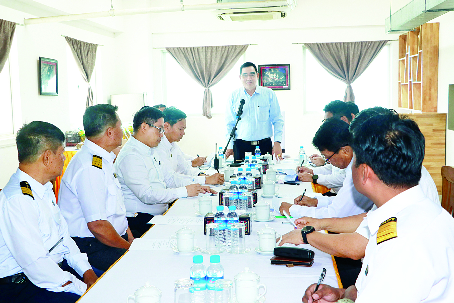 ဆက်လက်၍ ဦးဆောင်ညွှန်ကြားရေးမှူးနှင့် တာဝန်ရှိသူများက Pilot Station တည်ဆောက်ခြင်း ဆိုင်ရာအချက်အလက်များ၊ Pilot Transfer Operation ဆိုင်ရာ လုပ်ငန်းစဉ်များကို ရှင်းလင်းတင်ပြကြရာ ဒုတိယဝန်ကြီးက သိရှိလိုသည်များကို မေးမြန်းကာ ဝန်ထမ်းများအတွက် စားသောက်ဖွယ်ရာပစ္စည်းများကို ပေးအပ်သည်။