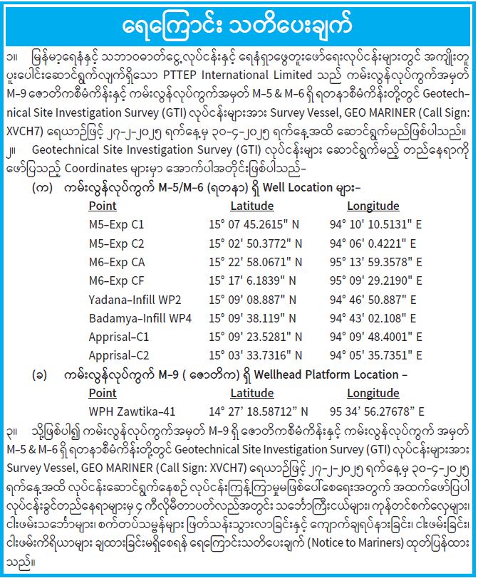 ဦးစီးဌာနနှင့် လုပ်ငန်းများ၏ ကြေညာချက်များ
