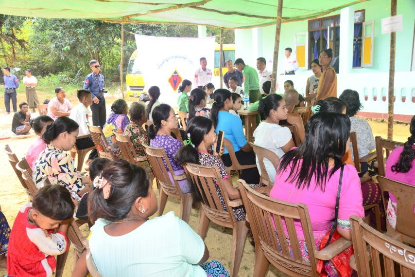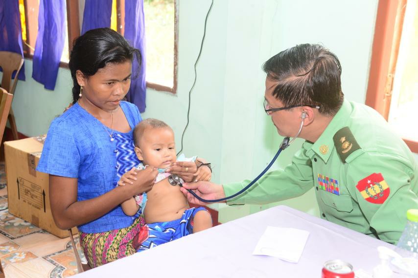 ထိုသို့ ဆောင်ရွက်ပေးရာတွင် ဆေးကုသမှုဆိုင်ရာရောဂါ ၃၃ ဦး၊ ခွဲစိတ်ရောဂါ ၁၁ ဦး၊ သားဖွား/မီးယပ်ရောဂါ ၅ ဦး၊ ကလေးရောဂါ ၅ ဦး၊ အရိုးရောဂါ ၈ ဦး၊ နား၊ နှာခေါင်း၊ လည်ချောင်းရောဂါ ၅ ဦး၊ မျက်စိရောဂါ ၁၃ ဦးနှင့် သွားနှင့်ခံတွင်းရောဂါ ၁၈ ဦးတို့ကို လိုအပ်သည့် ဆေးဝါးကုသမှုများ ဆောင်ရွက်ပေးသည်။ ၄င်းတို့အနက် ဓာတ်မှန်ရိုက် လူနာ ၈ ဦး၊ ECG စက်ဖြင့် နှလုံးစမ်းသပ်လူနာ ၉ ဦးနှင့် ဓာတ်ခွဲစမ်းသပ်လူနာ ၄ ဦးတို့ကို ရောဂါရှာဖွေစမ်းသပ်ကုသပေးခြင်းများ ဆောင်ရွက်ပေးပြီး ဆေးရုံတက်ရောက်ကုသရန် လိုအပ်သည့်လူနာ ၂ ဦးတို့ကို နီးစပ်ရာတပ်မတော်ဆေးရုံများသို့ တက်ရောက်ကုသနိုင်ရေး စီစဉ်ဆောင်ရွက်ပေးသည်။