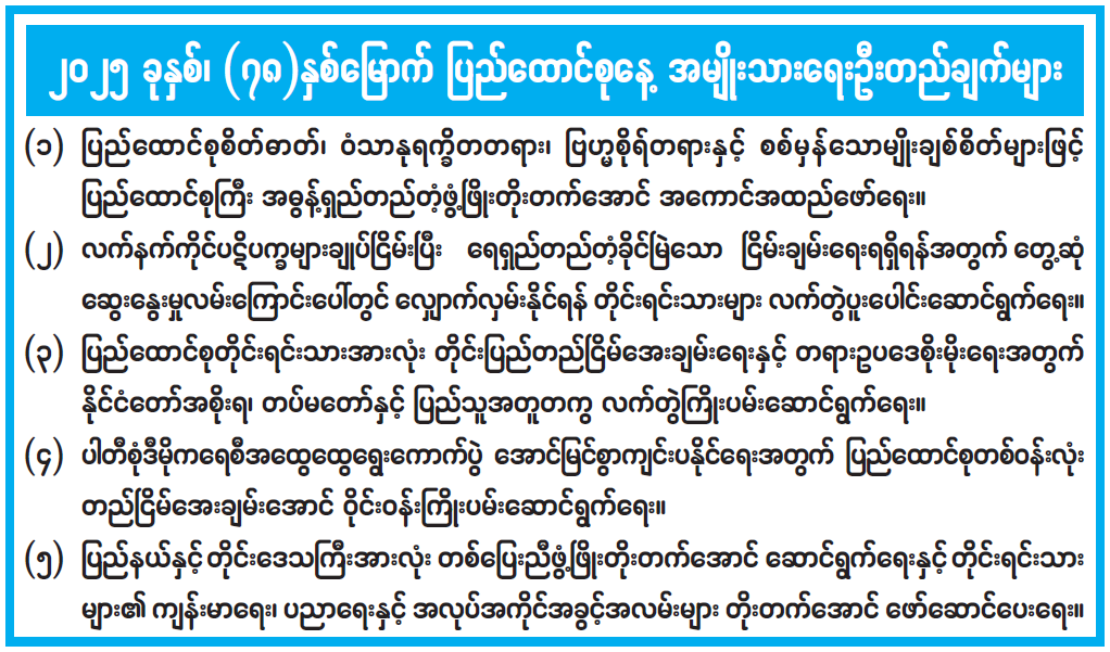 ၂၀၂၅ ခုနှစ်၊ (၇၈) နှစ်မြောက် ပြည်ထောင်စုနေ့ အမျိုးသားရေးဦးတည်ချက်များ