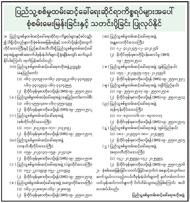 ပြည်သူ့စစ်မှုထမ်းဆင့်ခေါ်ရေးဆိုင်ရာကိစ္စရပ်များအပေါ် စုံစမ်းမေးမြန်းခြင်းနှင့် သတင်းပို့ခြင်း ပြုလုပ်နိုင် 01/30/2025