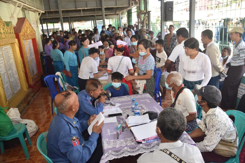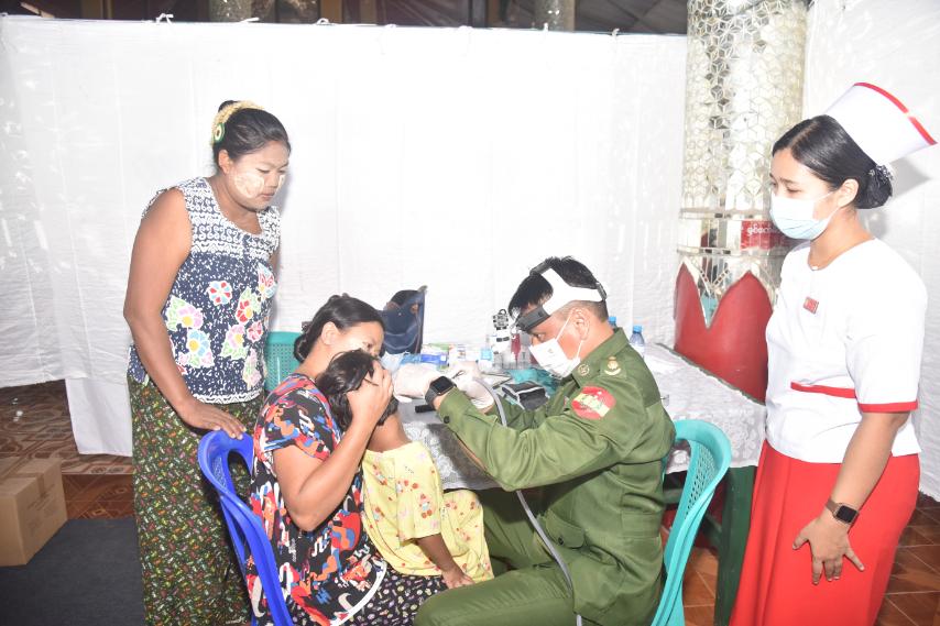 ထိုသို့ ဆောင်ရွက်ပေးရာတွင် ဆေးကုသမှုဆိုင်ရာရောဂါ ၁၄၄ ဦး၊ ခွဲစိတ်ရောဂါ ၁၁ ဦး၊ သားဖွား/မီးယပ်ရောဂါ ၁၆ ဦး၊ ကလေးရောဂါ ၂၁ ဦး၊ အရိုးရောဂါ ၈၇ ဦး၊ နား၊ နှာခေါင်း၊ လည်ချောင်းရောဂါ ၄၃ ဦး၊ မျက်စိရောဂါ ၉၁ ဦးနှင့် သွားနှင့်ခံတွင်းရောဂါ ၃၃ ဦးတို့ကို လိုအပ်သည့် ဆေးဝါးကုသမှုများ ဆောင်ရွက်ပေးသည်။ ၄င်းတို့အနက် အထွေထွေခွဲစိတ်လူနာ ၄ ဦး၊ မျက်စိခွဲစိတ်လူနာ ၂ ဦး၊ ဓာတ်မှန်ရိုက် လူနာ ၁၉ ဦး၊ အာထရာဆောင်းဖြင့် စမ်းသပ်စစ်ဆေးလူနာ ၃၉ ဦး၊ ECG စက်ဖြင့် နှလုံးစမ်းသပ်လူနာ ၃၈ ဦးနှင့် ဓာတ်ခွဲစမ်းသပ်လူနာ ၅၂ ဦးတို့ကို ရောဂါရှာဖွေစမ်းသပ်ကုသပေးခြင်းများ ဆောင်ရွက်ပေးပြီး ဆေးရုံတက်ရောက်ကုသရန် လိုအပ်သည့် လူနာ ၃ ဦးတို့ကို နီးစပ်ရာတပ်မတော်ဆေးရုံနှင့် မြို့နယ်ပြည်သူ့ဆေးရုံများသို့ တက်ရောက်ကုသနိုင်ရေး စီစဉ်ဆောင်ရွက်ပေးသည်။
