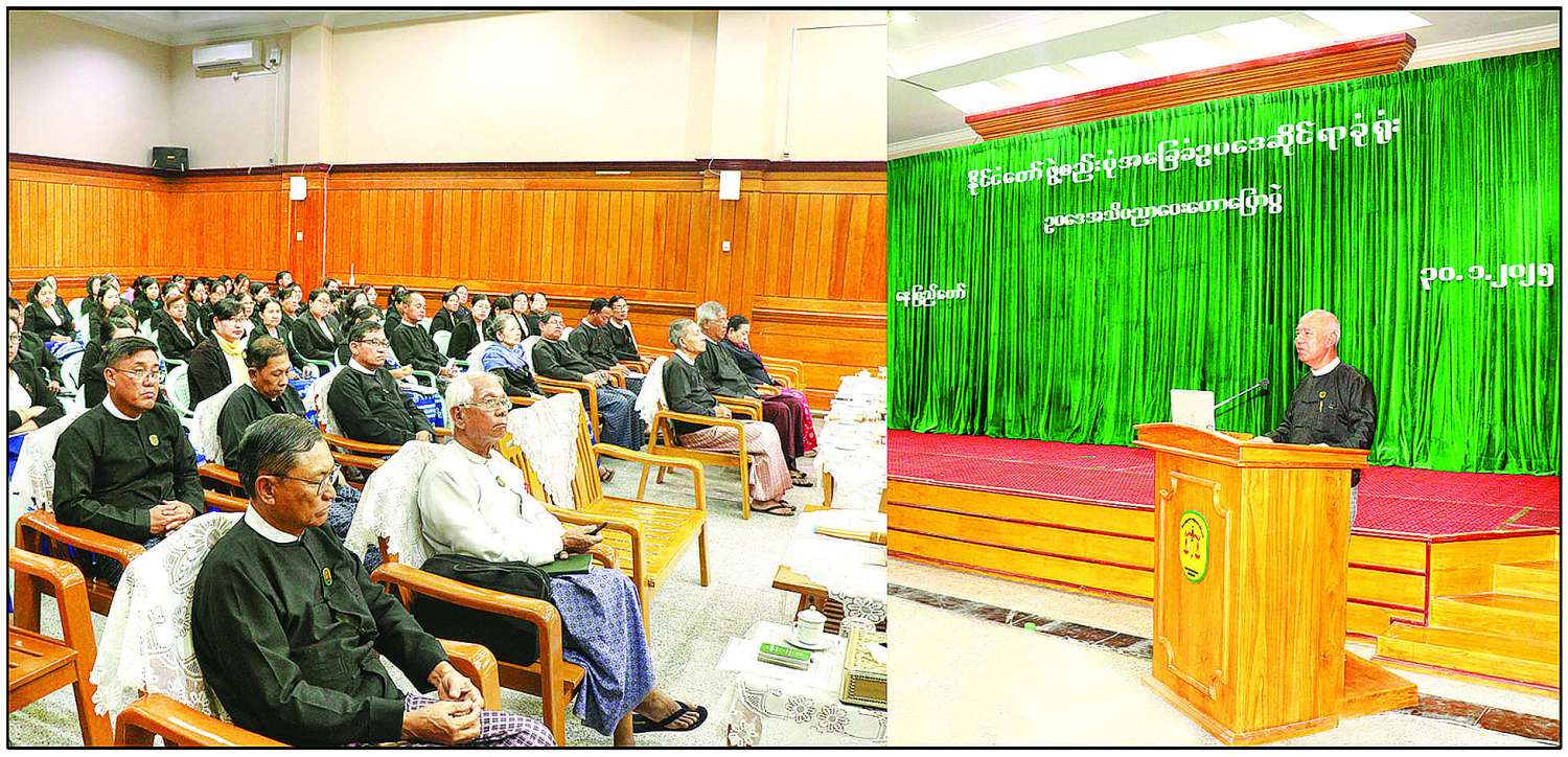 အခမ်းအနားတွင် နိုင်ငံတော်ဖွဲ့စည်းပုံအခြေခံဥပဒေဆိုင်ရာခုံရုံးဥက္ကဋ္ဌက နိုင်ငံ့ဝန်ထမ်းများသည် နိုင်ငံတော်စီမံခန့်ခွဲမှုယန္တရားများကို ချောမွေ့စွာလည်ပတ်နိုင်ရန် အထောက်အပံ့ပေးရသည့် ပုဂ္ဂိုလ်များဖြစ်သည့်အတွက် နိုင်ငံတော်၏ပင်မဥပဒေ အရင်းအမြစ်ဖြစ်သော နိုင်ငံတော် ဖွဲ့စည်းပုံအခြေခံဥပဒေအပါအဝင်၊ ရွေးကောက်ပွဲဥပဒေ၊ နိုင်ငံ့ဝန်ထမ်းဥပဒေ၊ နည်းဥပဒေ၊ နိုင်ငံတော်လျှို့ဝှက်ချက် အက်ဥပဒေ၊ ရာဇသတ်ကြီး အစရှိသည့် ဥပဒေများနှင့်စပ်လျဉ်း၍ အသိပညာဗဟုသုတရှိရန်လိုအပ်ကြောင်း၊ ထို့ပြင် နိုင်ငံ့ဝန်ထမ်းများသည် နိုင်ငံတော်မှပြဋ္ဌာန်းထားသည့် တည်ဆဲဥပဒေများ၊ ဥပဒေပြဋ္ဌာန်းချက်များကိုလည်း လေးစားလိုက်နာရန် ကျင့်သုံးရန်လည်း လိုအပ်ကြောင်း၊ ဥပဒေဆိုင်ရာ အခြေခံသဘော တရားများကို ကျယ်ကျယ်ပြန့်ပြန့် သိရှိနားလည်ပြီး သက်ဆိုင်ရာလုပ်ငန်းနယ်ပယ်အသီးသီး၌ ပေးအပ်သည့်တာဝန်များကို ဥပဒေနှင့်အညီ စနစ်တကျတာဝန် ကျေပွန်စွာထမ်းဆောင်နိုင်သော နိုင်ငံ့ဝန်ထမ်းများဖြစ်စေရန်အတွက် ဥပဒေအသိပညာပေးဟောပြောပွဲကို ကျင်းပပြုလုပ်ရခြင်းဖြစ်ကြောင်း ပြောကြားသည်။