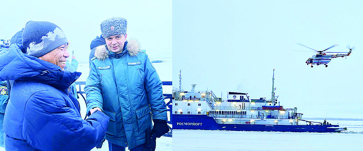 ထို့နောက် ရေခဲပြင်အတွင်းပိတ်မိနေသည့် အပြည်ပြည်ဆိုင်ရာရေကြောင်းသွား သင်္ဘောတစ်စင်းပေါ်ရှိ အန္တရာယ်ကြုံတွေ့ရသူများအား ဘေးအန္တရာယ်ရှာဖွေ ကယ်ဆယ်ကူညီရေးအဖွဲ့များက မောင်းသူမဲ့လေယာဉ်၊ ရေခဲပြင်သွားရှပ်ပြေးယာဉ်၊ ရဟတ်ယာဉ်၊ ရေခဲပြင်သွားလူနာတင် ယာဉ်များအသုံးပြု၍ ရှာဖွေကယ်ဆယ်ခြင်းနှင့် လိုအပ်သည့် ထောက်ပံ့ကူညီမှုများ ဆောင်ရွက်ခြင်းတို့ကို ရုရှားနိုင်ငံနှင့် မိတ်ဆွေနိုင်ငံများမှ အဖွဲ့အစည်းများ ပူးပေါင်းဆောင်ရွက်နိုင်ရေး ဇာတ်တိုက်လေ့ကျင့်ဆောင်ရွက်မှုကို ကြည့်ရှုအားပေးခဲ့သည်။