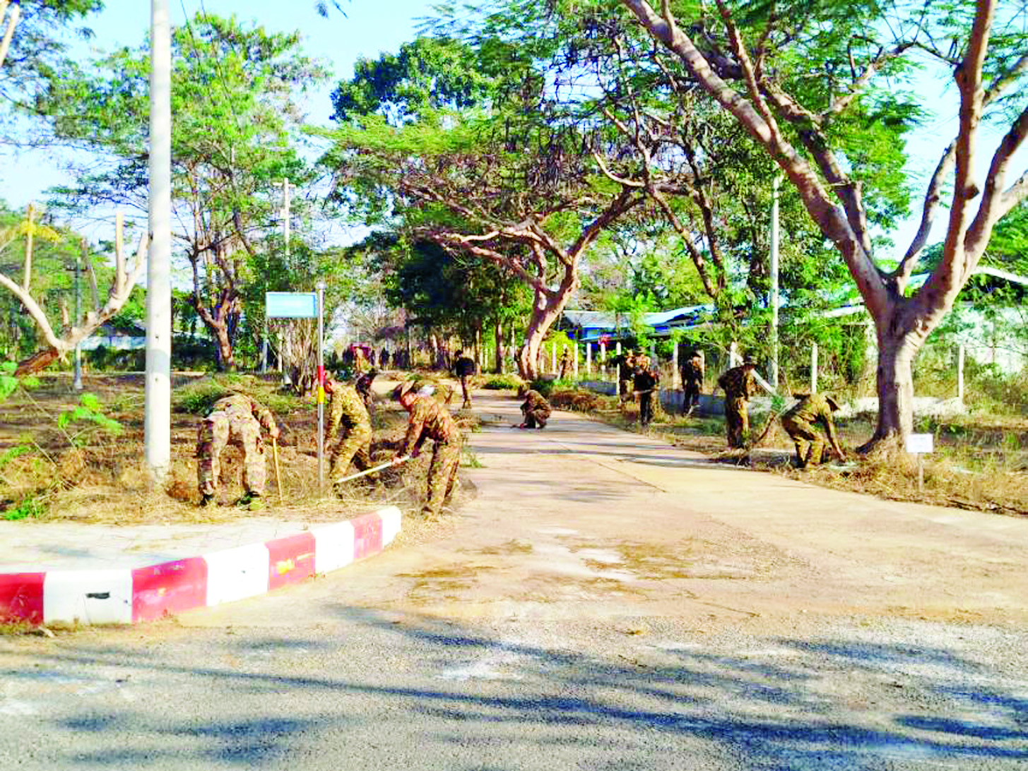 ထိုသို့ဆောင်ရွက်ပေးလျက်ရှိရာ ယနေ့တွင် ကယားပြည်နယ် လွိုင်ကော်တက္ကသိုလ်နှင့် ရန်ကုန်တိုင်းဒေသကြီး ကမာရွတ်မြို့နယ်အပါအဝင် မြို့နယ် ၁၇ မြို့နယ်တို့မှ စာသင်ကျောင်းများ၌ သက်ဆိုင်ရာတိုင်းစစ်ဌာနချုပ်များမှ နယ်မြေခံတပ်မတော်သားများ၊ မြန်မာနိုင်ငံရဲတပ်ဖွဲ့ဝင်များ၊ မီးသတ်တပ်ဖွဲ့ဝင်များ၊ ဌာန ဆိုင်ရာဝန်ထမ်းများ၊ ဒေသခံပြည်သူများနှင့် လူမှုရေးအသင်းအဖွဲ့များက စာသင်ကျောင်းများ အတွင်း/ အပြင်ရှိ ချုံနွယ်ပေါင်းမြက်များ ခုတ်ထွင်ရှင်းလင်း ခြင်း၊ အမှိုက်များရှင်းလင်းခြင်း၊ ရေစီးရေလာကောင်းမွန်စေရေး ရေနုတ်မြောင်းများ တူးဖော်ပေးခြင်း၊ ရေစည်ရေကန်များတွင် အဘိတ်ဆေးများ ခတ်ပေးခြင်း၊ ခြင်ခိုအောင်းနိုင်သောနေရာများ၌ ခြင်ဆေးဖျန်းပေးခြင်းနှင့် ကျန်းမာရေးအသိပညာပေးလက်ကမ်းစာစောင်များ ဖြန့်ဝေပေးခြင်းများကို စုပေါင်းဆောင်ရွက်ပေးကြသည်။