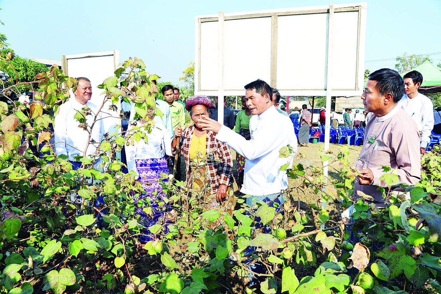 ထို့နောက် ပြည်ထောင်စုဝန်ကြီးနှင့် စိုက်ကွင်းပညာရှင်ဝန်ထမ်းများသည် နည်းပညာပေးစိုက်ခင်း၌ နေကြာသီးနှံနှင့် ချည်မျှင်ရှည်ဝါသီးနှံ စိုက်နည်းစနစ်များ၊ သွင်းအားစုသုံးစွဲရေးဆိုင်ရာများ၊ စိုက်ပျိုးရေ စနစ်တကျပေးသွင်းရေးနှင့် ဂွမ်းမွေးများသန့်စင်ထားသည့် အရည်အသွေးမီဝါမျိုးစေ့များကို အသုံးပြုစိုက်ပျိုးခြင်းဖြင့် ဝါအပင်ပေါက်ကောင်းမွန်ခြင်း၊ အရည်အသွေးကောင်း ဝါဂွမ်းများရရှိနိုင်ခြင်းကို လက်တွေ့ပြသ ဆွေးနွေးရှင်းလင်းကြပြီး တောင်သူများသိရှိလိုသည်များကို ရှင်းလင်းဆွေးနွေးသည်။