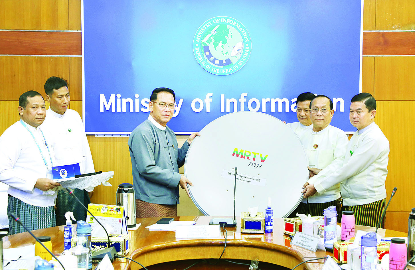 မြန်မာနိုင်ငံ စစ်မှုထမ်းဟောင်းများနှင့် မိသားစုဝင်များအတွက် MRTV DTH စလောင်း အစုံ ၁၀၀ နှင့် DVB T-2 Set Top Box အလုံး ၃၀၀ လှူဒါန်းခြင်းအခမ်းအနားကို ယနေ့နံနက်ပိုင်းတွင် နေပြည်တော်ရှိ ပြန်ကြားရေးဝန်ကြီးဌာန အစည်းအဝေးခန်းမ၌ ကျင်းပသည်။
