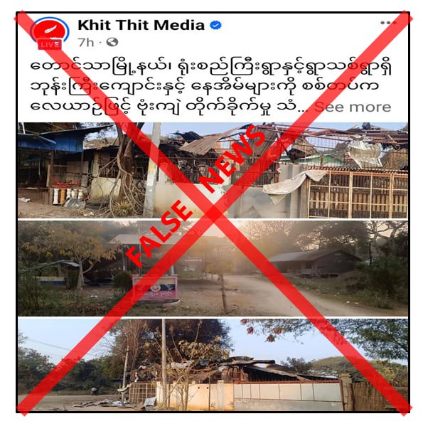 မန္တလေးတိုင်းဒေသကြီး၊ တောင်သာမြို့နယ်ရှိ ရုံးစည်ကြီးရွာနှင့် ရွာသစ်ရွာရှိ ဘုန်းတော်ကြီးကျောင်းနှင့် နေအိမ်များကို လုံခြုံရေးတပ်ဖွဲ့ဝင်များက လေကြောင်းဖြင့် ဗုံးကြဲတိုက်ခိုက်ခြင်းကြောင့် သံယာတော် ၁ ပါးနှင့် ပြည်သူတစ်ဦး ထိခိုက်ဒဏ်ရာရရှိကြောင်း တရားမဝင်ပြည်ဖျက်မီဒီယာတစ်ခုက မဟုတ်မမှန်သတင်းများ ရေးသားဖြန့်ဝေလျက်ရှိကြောင်း သိရသည်။