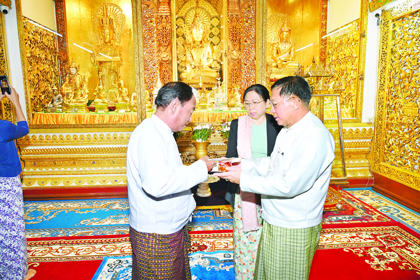 ထို့နောက် နိုင်ငံတော်စီမံအုပ်ချုပ်ရေးကောင်စီဥက္ကဋ္ဌ နိုင်ငံတော်ဝန်ကြီးချုပ်နှင့် ဇနီးတို့က ဘုရားကြီးအတွက် စုပေါင်းဘက်စုံအလှူတော်ငွေများကို ပေးအပ်လှူဒါန်းရာ ဂေါပကအဖွဲ့ဥက္ကဋ္ဌက လက်ခံရယူသည်။