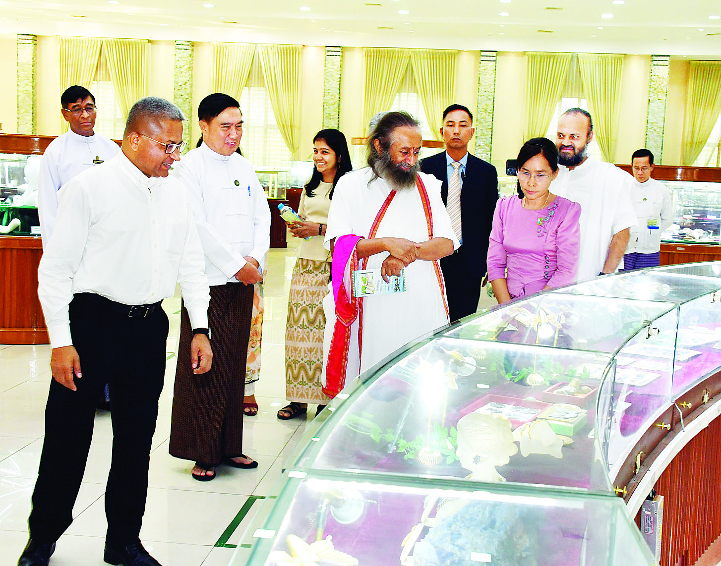 မွန်းလွဲပိုင်းတွင် ဧည့်သည်တော်နှင့် အဖွဲ့သည် ကျောက်မျက်ရတနာပြတိုက်သို့ ရောက်ရှိကြရာ ပြတိုက်တာဝန်ရှိသူများက ပြတိုက်အတွင်း ခင်းကျင်းပြသထားသည့် ကျောက်စိမ်းတစ်တုံးတည်းမှ ထွင်းထုထားသော ဥပ္ပါတသန္တိပုံစံတူကျောက်စိမ်းစေတီတော်၊ မြန်မာ့အကြီးဆုံး ပုလဲရတနာ၊ အရည်အသွေးမြင့် ကျောက်စိမ်းတုံးများ၊ ရှားပါးမြန်မာ့တွင်းထွက်ရတနာများဖြစ်သည့် ပတ္တမြား၊ နီလာနှင့် အခြားအဖိုးတန် ကျောက်မျက်ရတနာများကို လိုက်လံရှင်းလင်းပြသကြပြီး ငြိမ်းချမ်းရေးသံတမန်ကြီးက ဧည့်သည်တော်မှတ်တမ်းတွင် လက်မှတ်ရေးထိုးသည်။