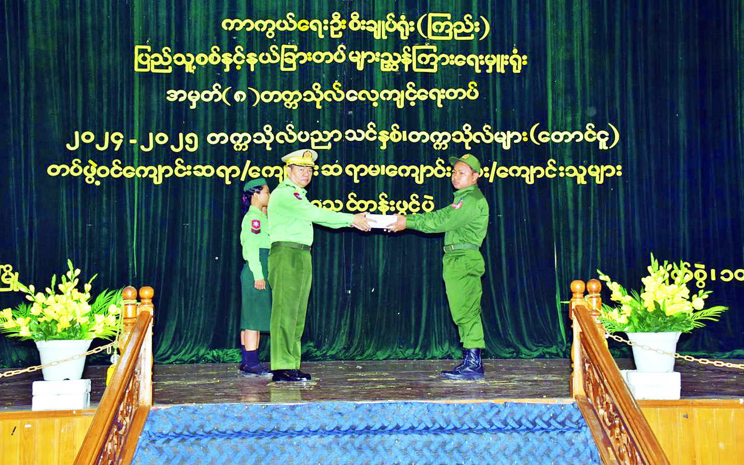 ထို့နောက် တိုင်းမှူးများနှင့် တက်ရောက်လာကြသူများက သက်ဆိုင်ရာတိုင်းဒေသကြီးနှင့် ပြည်နယ်များရှိ တက္ကသိုလ်လေ့ကျင့်ရေးတပ်ဖွဲ့ဝင် ကျောင်းသား ကျောင်းသူများ၏ ကပြဖျော်ဖြေမှုများကို ကြည့်ရှုအားပေးကြသည်။ ယင်းနောက် တက္ကသိုလ်လေ့ကျင့်ရေးတပ်ဖွဲ့ဝင် ဆရာ ဆရာမများ၊ ကျောင်းသား ကျောင်းသူများအတွက် တိုင်းမှူးများနှင့် တာဝန်ရှိသူများက ဂုဏ်ပြုချီးမြှင့်ငွေများနှင့် အားကစားပစ္စည်းများပေးအပ်ရာ တာဝန်ရှိသူများက လက်ခံရယူကြသည်။