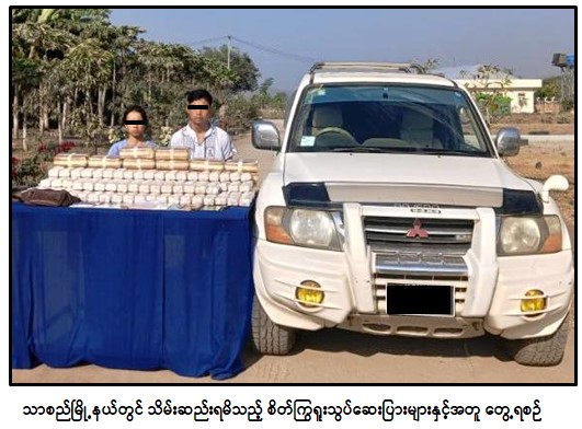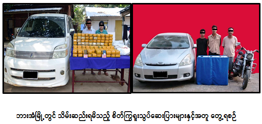 မူးယစ်ဆေးဝါးတားဆီးနှိမ်နင်းရေးရဲတပ်ဖွဲ့မှ တပ်ဖွဲ့ဝင်များပါဝင်သော ပူးပေါင်းအဖွဲ့သည် ဖေဖော်ဝါရီလ ၆ ရက်နေ့ ည ၁၀ နာရီခွဲအချိန် မန္တလေးတိုင်းဒေသကြီး၊ သာစည်မြို့နယ်၊ ကျွဲတပ်ဆုံကျေးရွာအနီးတွင် တောင်ကြီးမှ ရန်ကုန်ဘက်သို့ အားဘ(ခ)အားဆာ မောင်းနှင်ပြီး မမိုးမိုးအေးလိုက်ပါလာသည့် MITSUBISHI PAJERO မော်တော်ယာဉ်ကို သတင်းအရရှာဖွေရာ ယာဉ်ပေါ်မှ စိတ်ကြွရူးသွပ်ဆေးပြား ၅ သိန်း ဖမ်းဆီးရမိခဲ့ကြောင်း၊ အလားတူ ဖေဖော်ဝါရီလ ၇ ရက်နေ့ နံနက် ၈ နာရီခွဲအချိန် ကရင်ပြည်နယ်၊ ဘားအံမြို့၊ အဝေးပြေးကားကြီးဝင်းတွင် ထွန်းဇော်ဒေးဦးနှင့် မဖြူဖြူအောင်တို့ ၂ ဦးအား TOYOTA NOAN VOXY မော်တော်ယာဉ်တစ်စီးနှင့်အတူ ငါးခြောက်အိတ်များအတွင်း သိုဝှက်သယ်ဆောင်လာသည့် စိတ်ကြွရူးသွပ်ဆေးပြား ၉ ဒသမ ၉ သိန်း ဖမ်းဆီးရမိခဲ့ပြီး စစ်ဆေးဖော်ထုတ်ချက်အရ ယင်းနေ့ မွန်းလွဲ ၂ နာရီအချိန် မြဝတီမြို့၊ အမှတ်(၅)ရပ်ကွက်တွင် စိတ်ကြွရူးသွပ်ဆေးပြားများ သယ်ဆောင်ရောင်းဝယ်ရာ၌ ပူးပေါင်းပါဝင်သူ စောအုန်းကြွယ်(ခ) အုန်းကျော်အား ဆိုင်ကယ် ၁ စီးနှင့်လည်းကောင်း၊ မြဝတီမြို့၊ အမှတ်(၄)ရပ်ကွက်တွင် တိုးတက်ထွန်း (ခ)တိုးကြီးနှင့် ကောင်းဆက်ကျော်(ခ)ကိုဆက်တို့အား TOYOTA WISH မော်တော်ယာဉ် ၁ စီးနှင့်လည်းကောင်း အသီးသီးဖမ်းဆီးရမိခဲ့သဖြင့် စုစုပေါင်းဒေသကာလတန်ဖိုးငွေကျပ် ၃ ဒသမ ၇ ဘီလီယံကျော်တန်ဖိုးရှိ စိတ်ကြွရူးသွပ်ဆေးပြား ၁၄ ဒသမ ၉ သိန်း သိမ်းဆည်းရမိခဲ့ကြောင်း၊ စစ်ဆေးဖော်ထုတ်ချက်များအရ သိမ်းဆည်းရမိ စိတ်ကြွရူးသွပ်ဆေးပြားများအား ရှမ်းပြည်နယ်မှ မြဝတီနယ်စပ်သို့ သယ်ဆောင်ရောင်းဝယ်ခြင်းဖြစ်ကြောင်း သိရှိရသဖြင့် ၎င်းတို့အား ဥပဒေအရ အရေးယူထားရှိပြီး ကွင်းဆက်ပြစ်မှုကျူးလွန်သူများအား ဆက်လက်စစ်ဆေးဖော်ထုတ်လျက်ရှိကြောင်း မြန်မာနိုင်ငံရဲတပ်ဖွဲ့မှ သတင်းရရှိသည်။