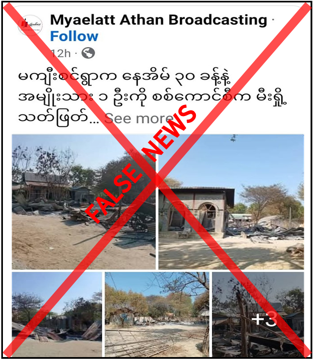 အဆိုပါသတင်းနှင့်ပတ်သက်၍ သက်ဆိုင်ရာလုံခြုံရေးတာဝန်ရှိသူတစ်ဦး၏ ပြောကြားချက်အရ လုံခြုံရေးတပ်ဖွဲ့ဝင်များအနေဖြင့် အဆိုပါမြို့နယ်အတွင်း နယ်မြေလုံခြုံရေး ဆောင်ရွက်လျက်ရှိသော်လည် ကျေးရွာများအား မီးရှို့ဖျက်ဆီးခြင်းနှင့် ပြည်သူများအား ဥပဒေမဲ့သတ်ဖြတ်ခြင်းမရှိကြောင်း၊ အကြမ်းဖက်သမားများအနေဖြင့် နယ်မြေတည်ငြိမ်အေးချမ်းမှုကို မလိုလားဘဲ ငြိမ်းချမ်းစွာနေထိုင်လျက်ရှိသော ပြည်သူလူထုအား အနိုင်ကျင့်ခြိမ်းခြောက်မှုများ လုပ်ဆောင်လျက်ရှိပြီး ၎င်းတို့အပေါ် ထောက်ခံအားပေးမှုမရှိသည့် ကျေးရွာများကို မီးရှို့ဖျက်ဆီးခြင်း၊ ဒေသခံပြည်သူများအား ဖမ်းဆီးသတ်ဖြတ်ခြင်းများ လုပ်ဆောင်လျက်ရှိကြောင်း၊ လုံခြုံရေးတပ်ဖွဲ့ဝင်များအနေဖြင့် ပြည်သူများ ငြိမ်းချမ်းစွာ နေထိုင်နိုင်ရေးအတွက် လိုအပ်သည့် နယ်မြေလုံခြုံရေးလုပ်ငန်းများကို ဆောင်ရွက်လျက်ရှိရာ တရားမဝင်ပြည်ဖျက်မီဒီယာများက လုံခြုံရေးတပ်ဖွဲ့ဝင်များအပေါ် ပြည်သူများအထင်အမြင်လွဲမှားစေရန် ရည်ရွယ်၍ ယခုကဲ့သို့ အခြေအမြစ်မရှိသည့် ဓာတ်ပုံများကိုအသုံးပြု၍ မဟုတ်မမှန် လုပ်ကြံရေးသားဖြန့်ဝေနေခြင်းဖြစ်ကြောင်း သတင်းရရှိသည်။