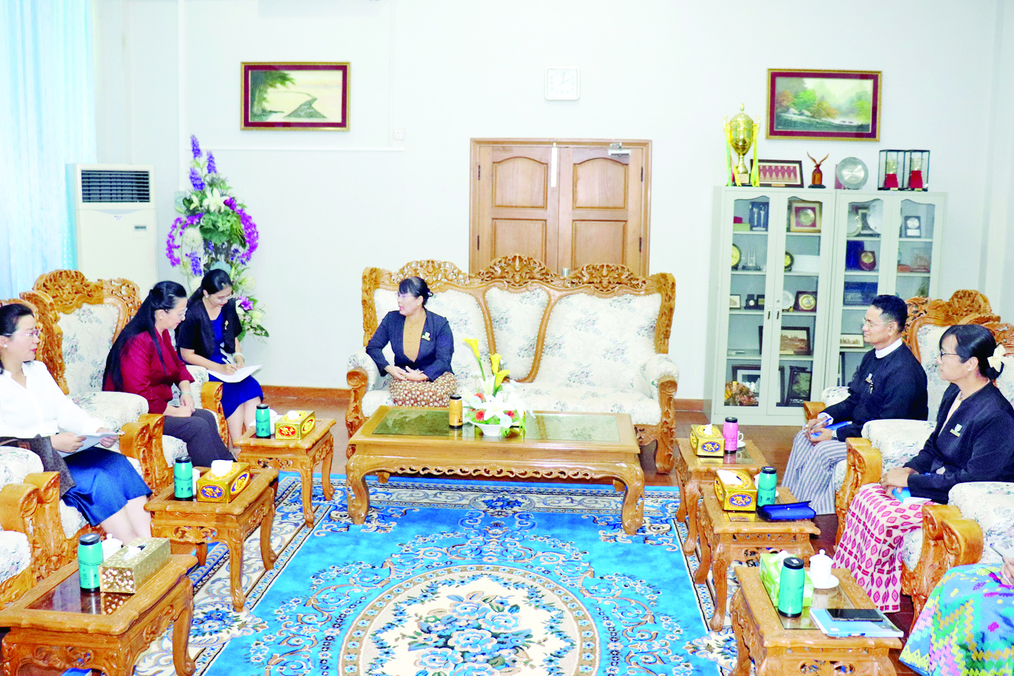 ဥပဒေရေးရာဝန်ကြီးဌာန ပြည်ထောင်စုဝန်ကြီးနှင့် ပြည်ထောင်စုရှေ့နေချုပ် ဒေါက်တာသီတာဦးသည် မြန်မာနိုင်ငံဆိုင်ရာ တရုတ်ပြည်သူ့သမ္မတနိုင်ငံ သံအမတ်ကြီး H.E. Ms. Ma Jia နှင့်အဖွဲ့အား ယနေ့မွန်းလွဲပိုင်းတွင် နေပြည်တော်ရှိ ဥပဒေရေးရာဝန်ကြီးဌာန သံတမန်ဧည့်ခန်းမ၌ လက်ခံတွေ့ဆုံသည်။