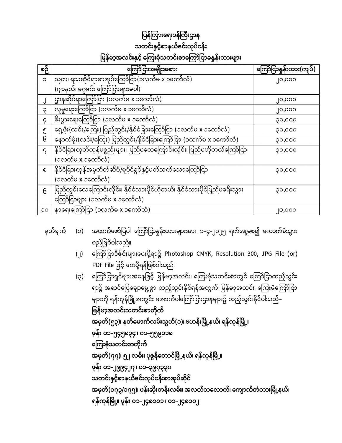 မြန်မာ့အလင်းနှင့် ကြေးမုံသတင်းစာများ၏ ကြော်ငြာခနှုန်းထားများ ပြင်ဆင်သတ်မှတ်