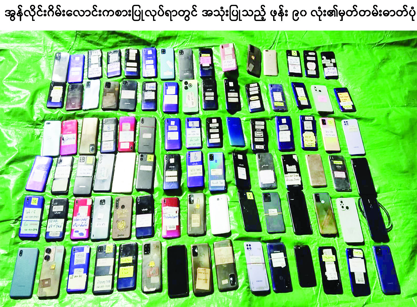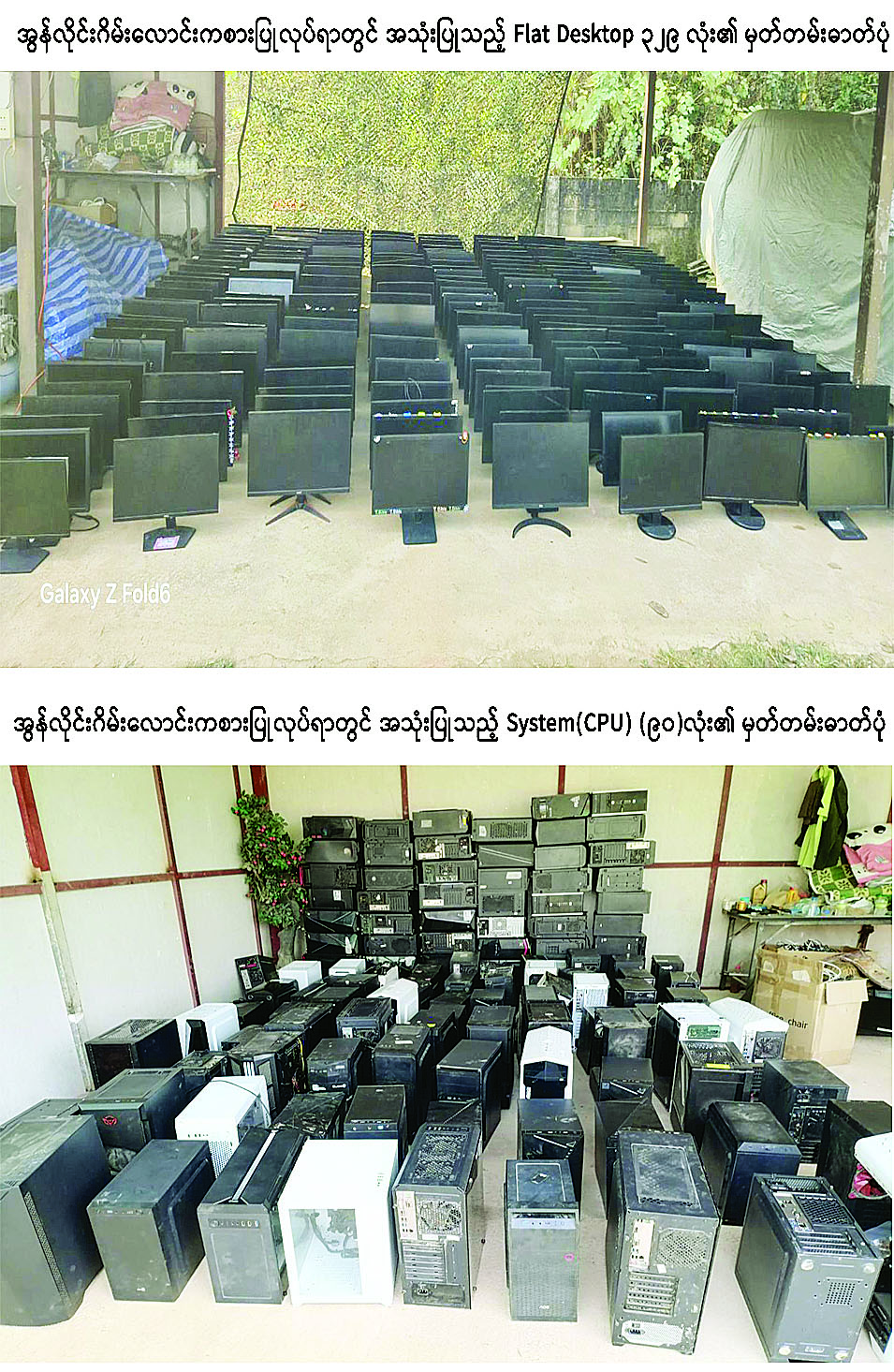 ရှမ်းပြည်နယ် (အရှေ့ပိုင်း) တာချီလိတ်မြို့ ဆန်ဆိုင်း (က) ရပ်ကွက်၌ တရားမဝင်အွန်လိုင်းလောင်းကစားနှင့် ငွေကြေးလိမ်လည်မှုဆောင်ရွက်နေသူများအား ဖော်ထုတ်ဖမ်းဆီးရမိ၊ လိုအပ်သည့် စစ်ဆေးဖော်ထုတ်မှုများဆောင်ရွက်
