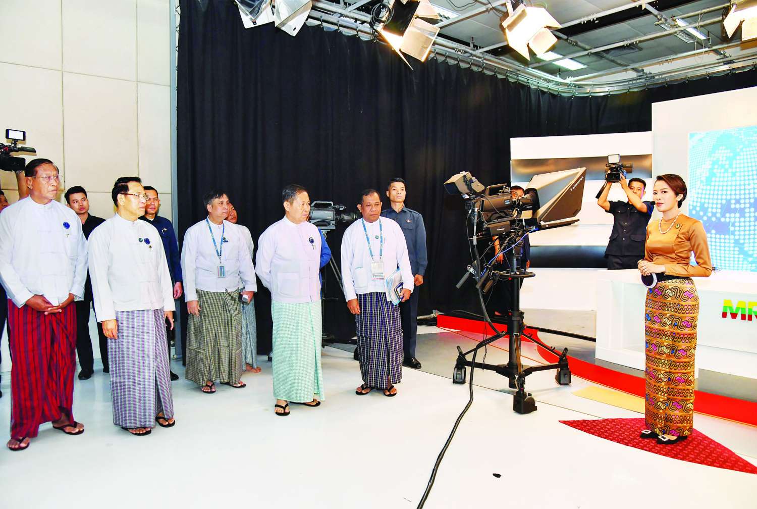 ယင်းနောက် နိုင်ငံတော်စီမံအုပ်ချုပ်ရေးကောင်စီ ဒုတိယဥက္ကဋ္ဌ ဒုတိယဝန်ကြီးချုပ်နှင့်အဖွဲ့ဝင်များသည် မြန်မာ့အသံနှင့် ရုပ်မြင်သံကြား၏ သတင်းစတူဒီယိုများ၊ ထုတ်လွှင့်ခန်းများ၊ Convergence News Room အခန်းများကို လေ့လာခြင်း၊ MSME Promo များအား မြန်မာနှင့်တိုင်းရင်းသားဘာသာများဖြင့် ရိုက်ကူးထုတ်လုပ်နေမှုများ၊ AI နည်းပညာဖြင့် ရုပ်သံထုတ်လွှင့်နိုင်ရန် လေ့လာစမ်းသပ်နေမှုများ၊ အသံသွင်း Studio တွင် “အရုပ်မျက်နှာပန်းမျက်နှာ” အသံသွင်း ဇာတ်လမ်းသရုပ်ပြ အသံသွင်းနေမှုများကို လိုက်လံကြည့်ရှုရာ ကဏ္ဍအလိုက်တာဝန်ရှိသူများ၏ ရှင်းလင်းတင်ပြကြမှုများအပေါ် လိုအပ်သည်များကို မှာကြား သည်။