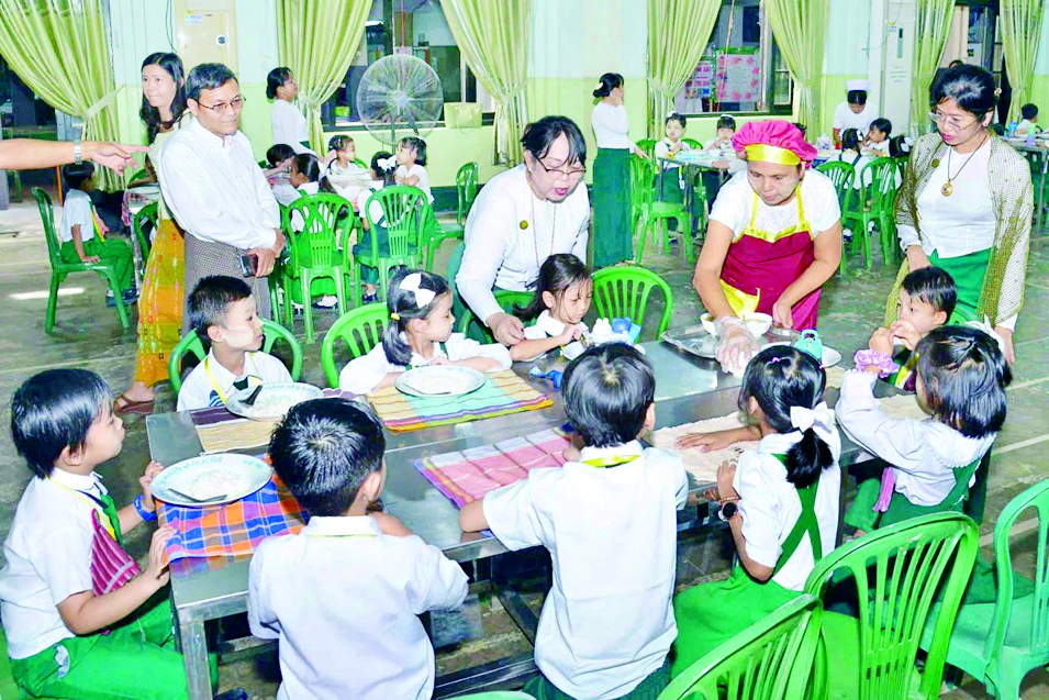 ရန်ကုန်တိုင်းဒေသကြီး ဒဂုံမြို့နယ် အမှတ်(၁)အခြေခံပညာအထက်တန်းကျောင်း၌ ပညာသင်ကြားလျက်ရှိသည့် Grade-1 ကျောင်းသား ကျောင်းသူ ၁၅၄ ဦးအား ကျောင်းတွင်းအာဟာရကျွေးမွေးခြင်း အစီအစဉ်ကို ယနေ့မွန်းလွဲပိုင်းတွင် အ.ထ.က(၁)ဒဂုံ ဒဂုံသီရိခန်းမ၌ ပြုလုပ်ပြီး ကျောင်းသား ကျောင်းသူများအား ထမင်း၊ သီးစုံပဲကုလားဟင်းနှင့် ဖီးကြမ်းငှက်ပျောသီးတို့ကို ကျွေးမွေးခဲ့ကြောင်း သိရသည်။