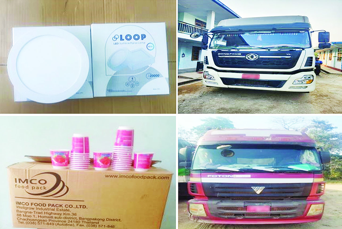 တရားမဝင် သစ်မျိုးစုံ၊ လုပ်ငန်းသုံးပစ္စည်းများ၊ လူသုံးကုန်ပစ္စည်းများ၊ စားသောက်ကုန်ပစ္စည်းများ၊ လိုင်စင်မဲ့မော်တော်ဆိုင်ကယ်နှင့် မော်တော်ယာဉ်များ ဖမ်းဆီးရမိ