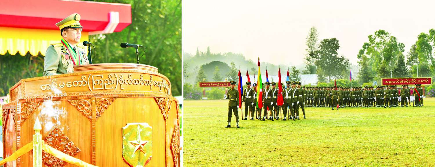 မျက်မှောက်ကာလတွင် သတင်း၊ နည်းပညာနှင့် ဆက်သွယ်ရေးကွန်ရက်စနစ်များ လျင်မြန်စွာဖွံ့ဖြိုးလာမှုနှင့်အတူ ဆန့်ကျင်ဘက်လူပုဂ္ဂိုလ်များနှင့် အဖွဲ့အစည်းများသည် လူမှုကွန်ရက်ကိုအသုံးပြုပြီး တပ်မတော်ကို နိုင်ငံရေးသိက္ခာကျအောင်၊ ပြည်သူလူထုယုံကြည်မှု ပျက်ပြားအောင်နှင့် အထင်အမြင်လွဲမှားအောင် ထိုးနှက်တိုက်ခိုက်မှုများ ပြုလုပ်လျက်ရှိကြောင်း၊ ထိုသို့ထိုးနှက်တိုက်ခိုက်မှုများနှင့် အခြေအမြစ်မရှိသည့် ပြောဆိုရေးသားမှုများသည် တပ်မတော်အပေါ်မှာသာမက တစ်မျိုးသားလုံး၏ စည်းလုံးညီညွတ်မှုအပေါ်၌ပါ ဆိုးရွားစွာထိခိုက်နိုင်သောကြောင့် မိမိတို့တပ်မတော်သားများ အပါအဝင် နိုင်ငံသားအားလုံးအနေဖြင့် အသိ၊ သတိများဖြင့်ယှဉ်ပြီး စဉ်းစားဆင်ခြင်နိုင်ရန်လိုအပ်ကြောင်း၊ တပ်မတော်နှင့်ပြည်သူအကြား စည်းလုံးညီညွတ်မှုအားနည်းပါက တိုင်းပြည်ကာကွယ်ရေးလုပ်ငန်းများကို စွမ်းအားပြည့်ဆောင်ရွက်နိုင်မည် မဟုတ်သည့်အတွက် တပ်ပြင်စည်းရုံးရေးလုပ်ငန်းများကိုလည်း အလေးထားဆောင်ရွက်သွားရန် လိုအပ်ကြောင်း၊ တပ်မတော်သားများအနေဖြင့် တပ်ပြင် စည်းရုံးရေးဆောင်ရွက်ရာတွင် “ပြည်သူသာအမိ၊ ပြည်သူသာအဖ” ဟု သဘောထားပြီး တာဝန်ကျရာနယ်မြေဒေသအသီးသီး၌ ပြည်သူ့အကျိုးပြုလုပ်ငန်းများကို စိတ်ရင်းစေတနာမှန်ဖြင့် ဆောင်ရွက်သွားကြရန် တိုက်တွန်းမှာကြားလိုကြောင်း။