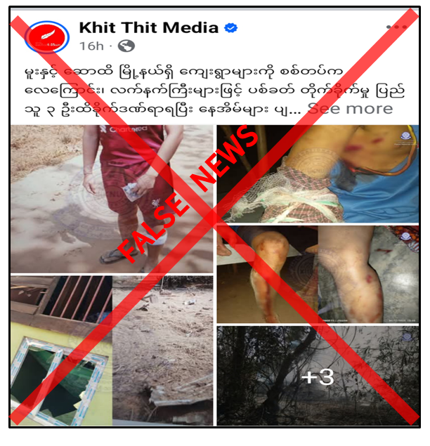 ပဲခူးတိုင်းဒေသကြီး၊ မူးမြို့နယ်နှင့် ဆောထိမြို့နယ်ရှိ ကျေးရွာများကို လုံခြုံရေးတပ်ဖွဲ့ဝင်များက လေကြောင်း၊ လက်နက်ကြီးများဖြင့် ပစ်ခတ်တိုက်ခိုက်ခြင်းများကြောင့် ပြည်သူ ၃ ဦး ထိခိုက်ဒဏ်ရာရပြီး နေအိမ်များ ပျက်စီးခဲ့ကြောင်း တရားမဝင်ပြည်ဖျက်မီဒီယာများက မဟုတ်မမှန် ရေးသားဖြန့်ဝေလျက်ရှိကြောင်း တွေ့ရှိရသည်။