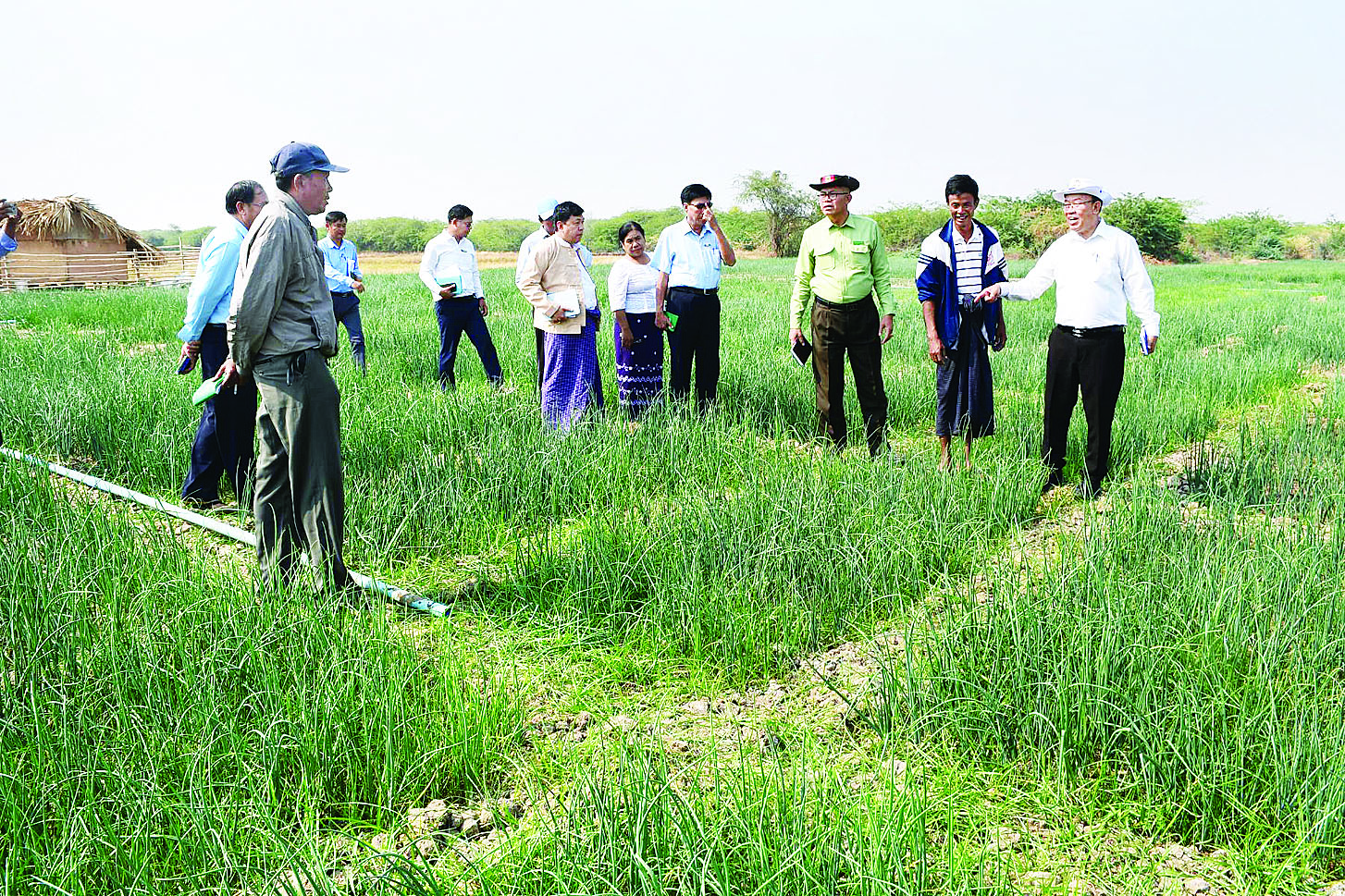 ထို့နောက် ကဖြူကျေးရွာအုပ်စု မင်းတဲကုန်းကျေးရွာရှိ ကြက်သွန်နီစိုက်ပျိုးသည့် ဒေသခံတောင်သူများနှင့် တွေ့ဆုံအမှာစကားပြောကြားပြီး နိုင်ငံ့စီးပွားမြှင့်တင်ရေးရန်ပုံငွေဖြင့် ဆိုလာစနစ်နှင့် စက်ရေတွင်းမှတစ်ဆင့် ရေသွင်းစိုက်ပျိုးလျက်ရှိသော ဒေသခံတောင်သူဦးအောင်မြင့်၏ ကြက်သွန်နီစိုက်ခင်းများကို ကြည့်ရှုအားပေးသည်။