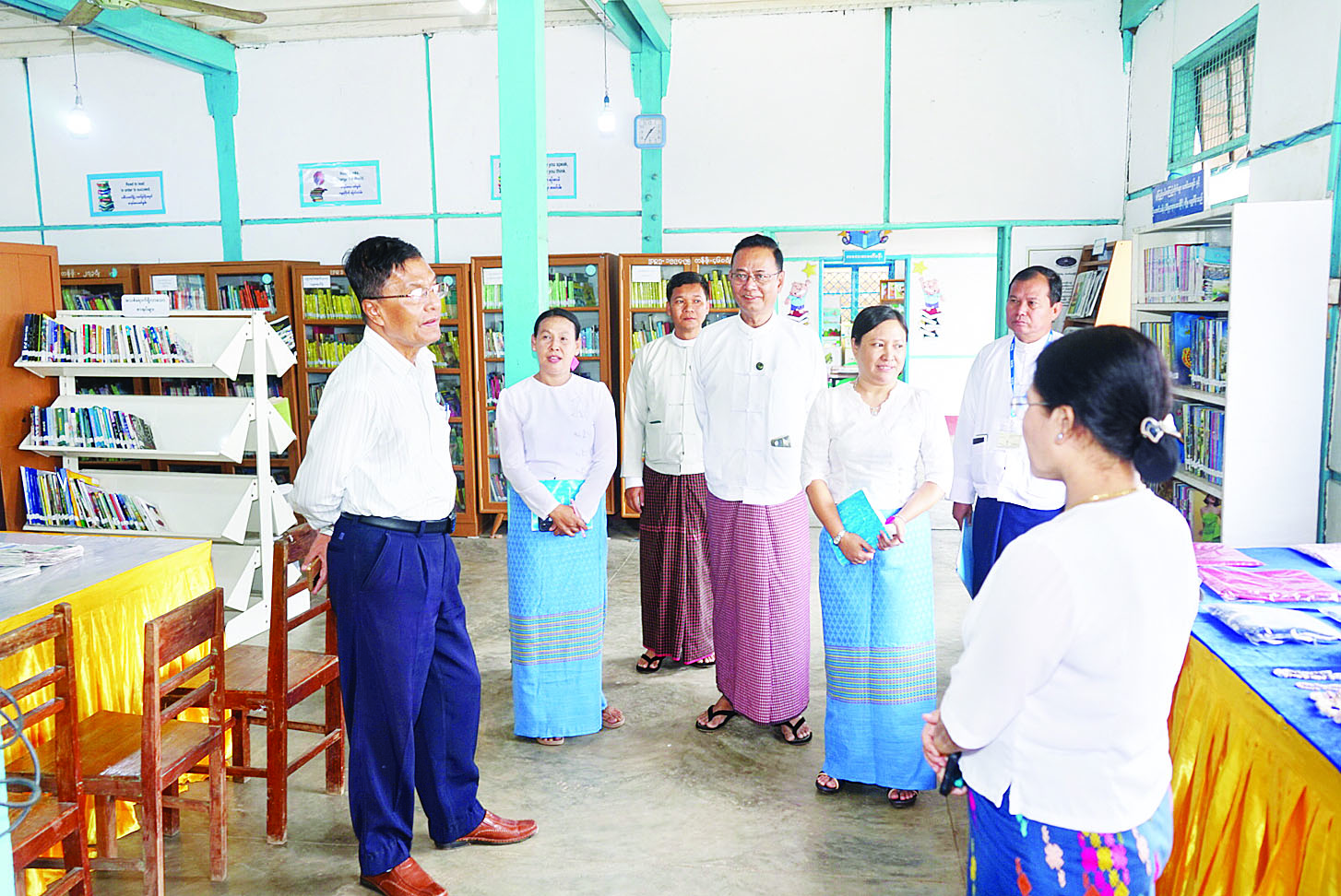 ဆက်လက်၍ ဘားအံခရိုင် ပြန်ကြားရေးနှင့်ပြည်သူ့ဆက်ဆံရေးဦးစီးဌာနရုံးသို့ရောက်ရှိပြီး စာကြည့်တိုက်နှင့် ပြည်နယ်အစိုးရအဖွဲ့အစီအစဉ်ဖြင့် ဆောက်လုပ်ပေးထားသော ဘက်စုံသုံးခန်းမတို့ကို ကြည့်ရှုစစ်ဆေးသည်။