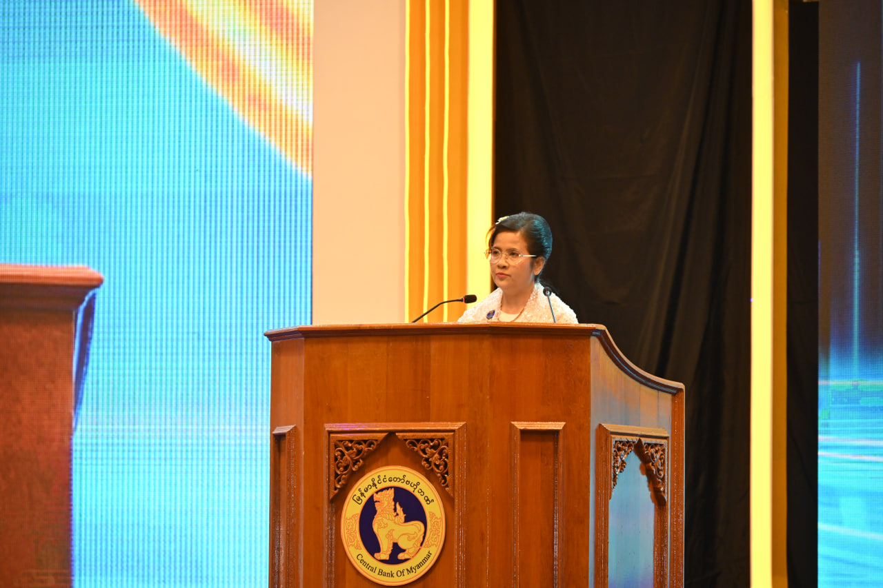 ထို့နောက် မြန်မာနိုင်ငံတော်ဗဟိုဘဏ်ဥက္ကဋ္ဌ ဒေါ်သန်းသန်းဆွေက မြန်မာနိုင်ငံ၏ ဒီဂျစ်တယ်ငွေပေးချေမှုအတွက် National QR Standard ဖြစ်သည့် MMQR နှင့် စပ်လျဉ်း၍ ဆောင်ရွက်ထားရှိမှုအခြေအနေများကို ရှင်းလင်းတင်ပြသည်။