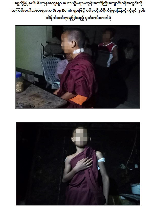 PDF အမည်ခံအကြမ်းဖက်အဖွဲ့က စစ်ရေးပစ်မှတ်မဟုတ်သည့် စစ်ကိုင်းတိုင်းဒေသကြီး၊ ရွှေဘိုမြို့နယ်၊ ဇီးကုန်းကျေးရွာရှိ မဟာပဉ္စမရာမဘုန်းတော်ကြီးကျောင်းဝန်းအတွင်းသို့ Drop Bomb များဖြင့် ပစ်ချတိုက်ခိုက်ခဲ့မှုကြောင့် ဒေသခံပြည်သူများ ထိခိုက်သေဆုံးခဲ့ပြီး ကိုရင်များဒဏ်ရာများရရှိခဲ့ကြောင်း သိရှိရသည်။