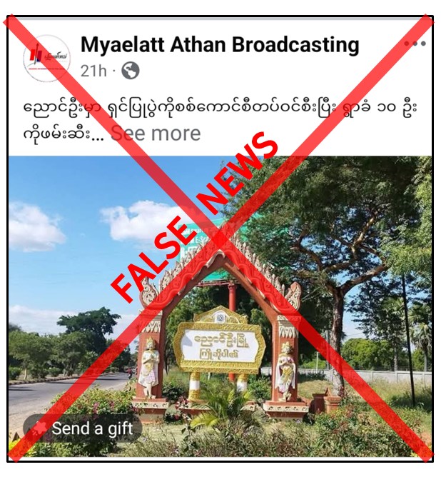 မန္တလေးတိုင်းဒေသကြီး၊ ညောင်ဦးမြို့နယ်၊ မြောင်ကျေးရွာ၌ ရှင်ပြုပွဲပြုလုပ်နေစည် လုံခြုံရေးတပ်ဖွဲ့ဝင်များက ဝင်ရောက်ပြီး ရွာခံ ၁၀ ဦးကို ဖမ်းဆီးသွားကြောင်း တရားမဝင် ပြည်ဖျက်မီဒီယာများက သတင်းအမှားများ မဟုတ်မမှန်ရေးသားဖြန့်ဝေလျက်ရှိကြောင်း တွေ့ရှိရသည်။