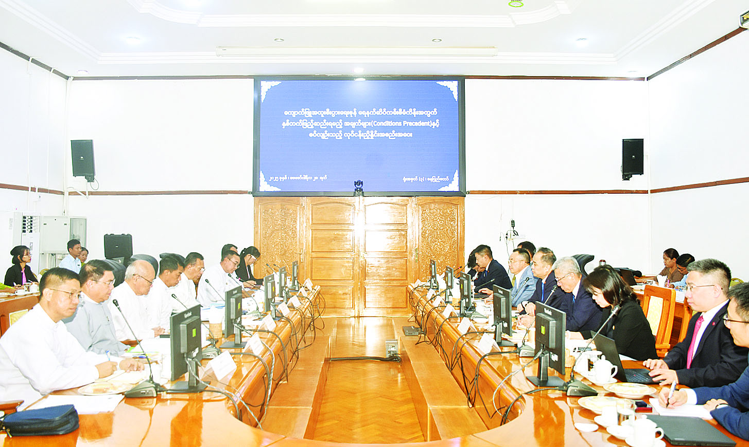 ကျောက်ဖြူအထူးစီးပွားရေးဇုန် ရေနက်ဆိပ်ကမ်းစီမံကိန်း အောင်မြင်စွာအကောင်အထည်ဖော်ဆောင်ရွက် နိုင်ရေးအတွက် မြန်မာဘက်နှင့် CITIC ဘက်မှ နှစ်ဖက်ကြိုတင်ဖြည့်ဆည်းရမည့်အချက်များ (Conditions Precedent)နှင့်စပ်လျဉ်းသည့် လုပ်ငန်းညှိနှိုင်းအစည်းအဝေးကို ယနေ့မွန်းလွဲပိုင်းတွင် နေပြည်တော် ရုံးအမှတ်- ၃ ၊ စီးပွားရေးနှင့်ကူးသန်းရောင်းဝယ်ရေးဝန်ကြီးဌာန အစည်းအဝေးခန်းမ- ၁ ၌ ကျင်းပသည်။