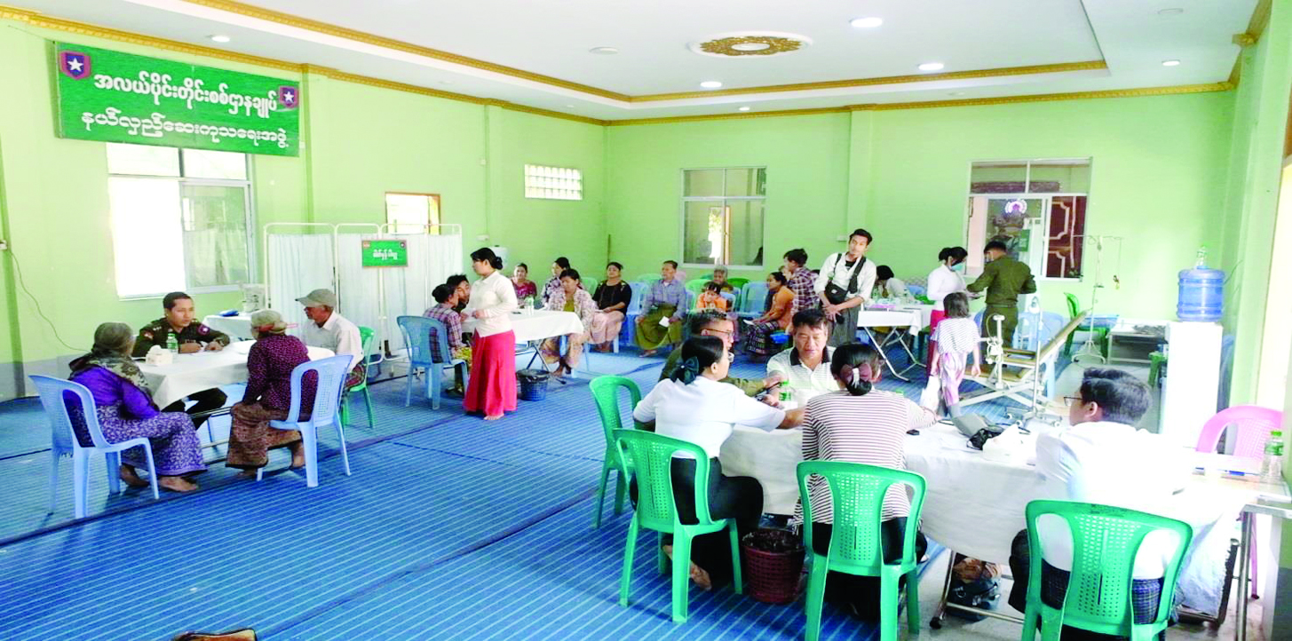 ထိုသို့ ဆောင်ရွက်ပေးရာတွင် ဆေးကုသရေးအဖွဲ့က သံဃာ တော် ၄၁ ပါးနှင့် ဒေသခံပြည်သူ ၁၀၆ ဦးတို့အား သွေးတိုးရောဂါ၊ အဆစ်အမျက်ရောင်ရောဂါ၊ ဆီးချိုရောဂါ၊ သားဖွားမီးယပ်ရောဂါ၊ အသက်ရှူလမ်းကြောင်းဆိုင်ရာ ရောဂါ၊ မျက်စိရောဂါ၊ သွားနှင့် ခံတွင်းရောဂါ၊ ခွဲစိတ်ကုသမှုဆိုင်ရာရောဂါ၊ ကလေးရောဂါ၊ အထွေထွေရောဂါတို့နှင့် ပတ်သက်၍ လိုအပ်သည့် ကျန်းမာရေးစစ်ဆေးကုသပေးခြင်းများ ဆောင်ရွက်ပေးပြီး ကျန်းမာရေးအသိပညာပေး ဟောပြောဆွေးနွေးခြင်းများ ဆောင်ရွက်ပေးကာ ဆေးရုံတက်ရောက်ကုသရန် လိုအပ်သူများအား နယ်မြေခံတပ်မတော်ဆေးရုံသို့ တက်ရောက်ကုသနိုင်ရေး စီစဉ်ဆောင်ရွက်ပေးသည်။